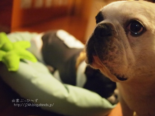 お誘い 日常のこと 2014年03月16日 comment(1) http://j24h.blog.shinobi.jp/Entry/1045/お誘い お休みの日といってもいろいろすることはあるわけで、今日も午前中はぶひ部屋の片づけ。午後は庭掃除とアイロンかけ。そんなことをやっているとなかなかぶひと遊ぶ時間もないのだけど、アイロンかけをはじめるとふうさんがロープを持ってやってきた。「これで遊んでくだつぁい@ふう」今アイロンかけしてるんだけどなぁと思いながら片手でロープを受け取る。 しばらく左手でひっぱりっこをしながら右手でアイロンかけ(笑)でもまったく作業効率が悪いわけで、すぐにロープから手を離すと、またもやふうさんがロープを持ってくる・・・を何度か繰り返した。 「ワタクスも遊びたいのでつが・・・@大左エ門」ふうさんが独占しているので、なかなか大左エ門にまわってきませんねぇ。 大左エ門は、ひっぱりっこではなく、ひたすら食う(笑)なので気を付けないと、気が付いたらロープがバラバラにほどけていて本当に食べているときがある。 そうそう2ぶひでそうやって遊んでいてくださいな。と思ったんだけど・・・ ふうさん、おもしろくなさそうな顔ですね(-_-;) PR 【ランキング参加中】お気に召したらバナーをクリックしてくださいね。