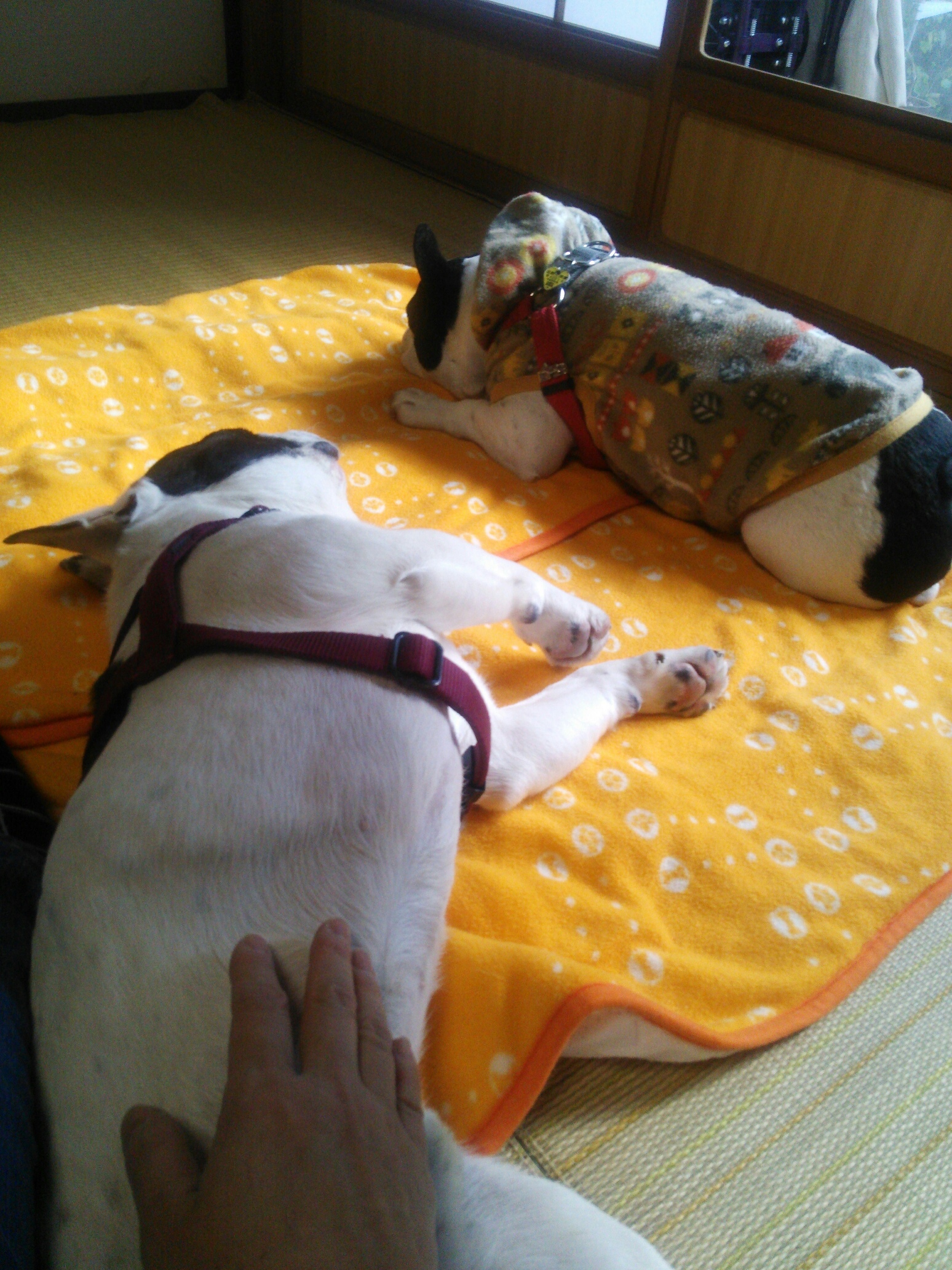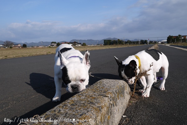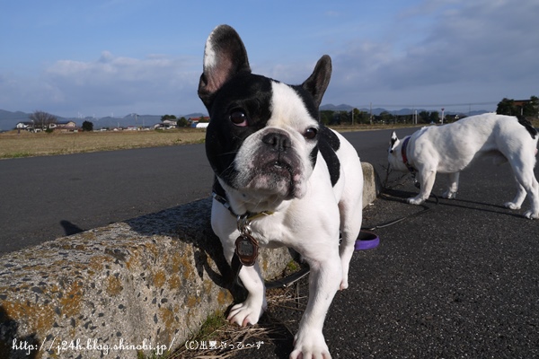 お散歩日和 日常のこと 2014年01月03日 comment(1) http://j24h.blog.shinobi.jp/Entry/1031/お散歩日和 今年のお正月は、おだやかですね~。今日は特にお散歩日和です。最近ぶっひ~ず散歩は、ほとんどおとやんが行ってくれていますが、今日は私とお散歩ですよ。 ほっんとお天気がよくて風がなくて気持ちいい~ですね^^(そのわりにマフラーぐるぐるまいてコート着こんでますが・・・)調子よく歩くぶっひ~ずですが、ふうさんは縁石クンクンスンスンタイムが多いのがタマニキズ。 マーキングも無理やり一滴のオチッコを絞り出してでもしないと気が済まないらしいです。一滴のオチッコに何か意味があるのでしょうか? ふう兄、早くでつよ!@大左エ門散歩よりヒーター前が好きな大左エ門は、さっさと帰りたいようですが、外はふうさんの興味をひく匂いがムンムンに漂っているらしく、なかなかふうさん、動きません。 やっと前進です。おちらと散歩が終わって帰ってくると・・・・ふうさん、おかやんにべったり~の甘ちゃん。カメラを向けるとそっぽを向いていますが、今は隣でウトウトしています。えぇ。大左エ門はやっぱりヒーター前で寝てますけどね。こののんびり感、飼い主の私も最高の時間です。いい正月だなぁ~。 【ランキング参加中】お気に召したらバナーをクリックしてくださいね。