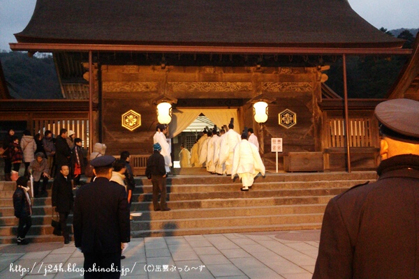 あけました 日常のこと 2014年01月02日 comment(1) http://j24h.blog.shinobi.jp/Entry/1030/あけました 2014年、たぶん独身の時以来の正月休みらしい休みを過ごせている摩耶です。やっぱり正月は、このくらいのんびりでなくっちゃねー。昨日の元日は、夜明けに出雲大社へ参拝にいきました。いつもは3日の夕方に行くのですが、今年は元旦の夜明け。 車も人も少なくて大正解! 御本殿に上がっていく礼装の神職さんたち多数。午前7時、今年最初の神事の始まりです。大御饌祭、御飯供祭とやら。何をするのかは、御本殿内の神事のため全く見えずわかりません。 御本殿の西側。こちら向きで神様は座っていらっしゃるので、こちらから拝むとよいとか?ほんじゃ何故、参拝正面を西側に作らなかったん?出雲大社は犬連れOK(建物内には入れません)なので、犬連れ参拝の人もチラホラみかけます。うちも何度か連れて行ったことがありますが、今年はお留守番。出雲ぶっひ~ず、年がら年中正月みたいな生活ぶりなので、正月だからといって特別なことは何もありませんね。 あと1か月ほどで6歳になる大左エ門。知恵は足りないけど、大きな病気にこれといってかからずありがたやです。2014年健康で楽しく暮らせますように^^皆さん、今年もよろしくお願いいたします。 PR 【ランキング参加中】お気に召したらバナーをクリックしてくださいね。