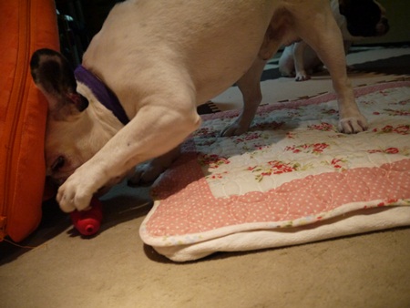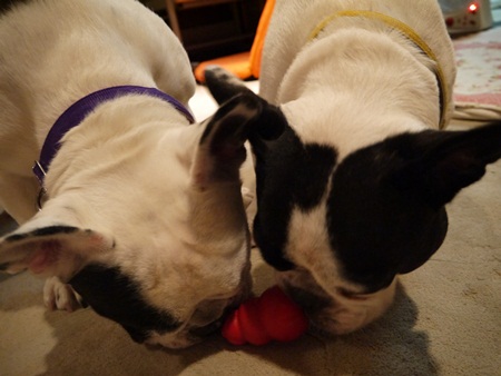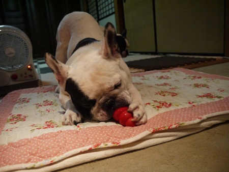 コングぅ~の巻き 日常のこと 2012年09月18日 comment(2) http://j24h.blog.shinobi.jp/Entry/916/コングぅ~の巻き ゼクス・・・連日何かしらやらかしているらしく、飼い主さんからメールが届く。今日は、留守番中に犬用おやつサプリアニモファミールスナックをどうやってかは不明だが、棚から強奪し袋を破って完食していた。という情報が届いた。しかも最近は、先住犬のアトムくんに対する噛みつきが激しいらしい。アトムくん、ごめんよぉー。やんちゃゼクスは、ちとやりたい放題すぎじゃな。2歳児玉付き絶好調だね。うちの6歳児玉付きじーさんも時々、ストレス発散したくなるらしく部屋ダッシュをやってみたり息切れするほどガジガジ棒を堪能したりするのだが、そこは6歳児。持久力なし。今日は、久しぶりにコングにフードを詰めて、そのフードが簡単に出てこないように先日買った豚皮のカミカミおやつを小さくきって蓋代わりに詰めた。5分くらいなもんだったが、6歳児にはこのくらいでちょうど良かったらしい。食べつくしたらさっさと休憩するふうたれ。からっぽのコングだけど、全然気にしてないらしい大左エ門。中身がないと見向きもしないふうたれと違って、ノーテンキにコングで遊ぶ大左エ門。ふうたれ、完全にくたばりました。はぁ年じゃねやっぱり。ちょっと2歳児の頃が懐かしい・・・。 【ランキング参加中】お気に召したらバナーをクリックしてくださいね。