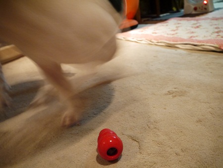 近寄るな危険!の巻き 日常のこと 2012年09月23日 comment(2) http://j24h.blog.shinobi.jp/Entry/917/近寄るな危険!の巻き 先日コングがあまりにもふうたれに好評だったので(飼い主が思ってるだけ)再びコングに乳酸Bフードを詰めて豚皮で蓋をしてふうたれに投入!コングを持つ手もサマになってますねぇ~。なかなかフードが出てこないので必死ひとつづつしか出てこないからもどかしい大左エ門「早く手放すでございますよ」(なかなか大左エ門の手には入らないねぇ)どんどん転がっていくコングと闘うふうたれ因みにまだ中に入ってんのかな?大左エ門・・・それに近づくとキケンじゃよ。て・・・・ほ~ら!言ったじゃんか!残像だけ写る写真・・・それほどスピード感あふれる現場なのだ。こういうのブレずに撮るのって、どーやったらキレイに撮れるん?ブレブレなので、動画でどうぞ(音声が出ますので注意してください)最近、しばらくバトルしたあとふうさんが、こっちを見て様子をうかがうことがあるんで、そのときに「おしまいっ」って声をかけると、バトルが終了することが増えた。ふうたれもちっとは大人になったんかねぇ。因みに、コングの中にはまだ豚皮が残っていました。多分空っぽだったらふうさんも怒らなかったに違いない。 PR 【ランキング参加中】お気に召したらバナーをクリックしてくださいね。