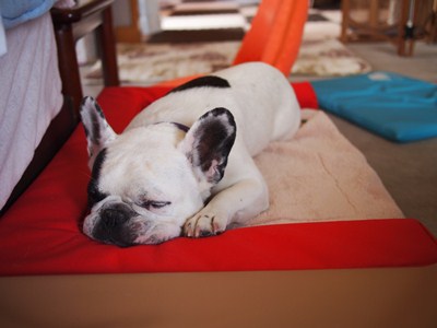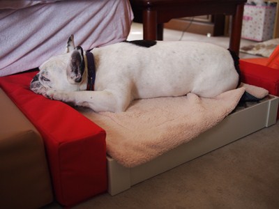 クールレアベッドに外枠登場! 日常のこと 2012年07月08日 comment(0) http://j24h.blog.shinobi.jp/Entry/887/クールレアベッドに外枠登場! 昨年の夏も終わるころになって、ブルドスさんのクールレアというベッドを購入した我が家。どうせならもう少し早く思い切れば良かったのだが、このベッドかなりのお値段がする。しかも購入前から「乗ってくれないかもしれない」という嫌な予感があった。それでも購入に踏み切ったのは、数年前の猛暑のこともあるが、やっぱり原発事故により節電の声が大きくなったからだった。それに最近、気象がおかしいことが多いので落雷による停電も怖い。そこで清水の舞台ほどではないけど、我が家の二階から飛び降りる覚悟で購入したのだ。こういう時に自己暗示をかけるための魔法の言葉がある。「金より生命が大事。金より生命が大事。」念仏のように唱えてみるとホ~ラ不思議。二階からでも飛び降りれるから!(アナタ アンジニ カカリヤスイネ)実際、購入してみて本体だけを部屋に置いておいても予想どおり素通りするふうたれだったので、留守番するときのクレートの中に入れて無理やり使わせていた。が、やっぱりアゴのせ背もたれがないので落ち着かないらしい。「金より生命が大事」という暗示は、スルスルとほどけてゆく。悶々としながら今年も夏を迎え、ちょっとした使い道を思いついた。「そうだ簡易冷蔵庫になるわ!」ということで、クールレアの本体に保冷剤と一緒にビールやジュースを入れてみることに!!我が家は、二階で過ごすことが多いので、これはありがたい。しかもエコ。電気代0円。そこそこいい感じで冷えてくれる。まぁかなり目的外使用ではあるが。とにかく何らかの価値をこのベッドに見出したい悪あがきである。もっともクールレアの上に水マットを置いておくと、ふうさん体を冷やしたくなると上にのっていたので、それなりに使用目的に沿った使い方もしていた。ただしばらく前からこのベッドの外枠を製作するという情報を得ていたので、ひそかに今か今かと待っていたところ、ついに!ついに!登場!クールレアの外枠~!外枠といえど値段は、ため息の出る値段なのだが、そんなこと言っている場合ではない。(注:クールレア本体の上にケーナインクーラーという水マットを乗せています。)どう?ふうさん?乗り心地は?(届いたばかりなので、まだちょっと慣れない感じ)でもこの土日で、すっかりリラックスして使ってくれるようになった。今日は涼しいので、水マットを外してブルドスさんのボアマットを敷いてみたらこの通り~!あ~お金つぎ込んだ甲斐があったよ(泣)本体+外枠で、型落ちしたパナソニックのミラーレス一眼のルミックスGF3の最安値より高いけど・・・。(ちょっと心が痛む)これで夏場だけでなく一年中このベッドが活躍できそうなので、毎年あれやこれやクールアイテムを買っては無駄にしていたことを思えば、大事に長く使えるぶんよほどいい!(そう思うほど、今までクールアイテムを色々試しているのだ)ちなみに暑さに強い大左エ門は・・・・ボアを敷いているとこのベッドで寝ているが、水マットを敷いておくと乗らない・・・。基本、冷たいとこは好きじゃないらしい。アゴ乗せ程度にしか使っているところを見たことがない。最近は、窓辺のソファーの上が定位置。これから夏本番!留守中の停電が起きないように祈るばかりだね。 PR 【ランキング参加中】お気に召したらバナーをクリックしてくださいね。