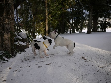 軒下オトコの巻き 日常のこと 2012年02月19日 comment(1) http://j24h.blog.shinobi.jp/Entry/852/軒下オトコの巻き はろ~出雲ぶっひ~ずでーす!昨日の朝起きてみたら外が真っ白でおべたわー。ちょっと好奇心だけは満載のオラちゃんたち。早く開けて~!開けないなら顔を突っ込んででも開けちゃうぞ!と出てみたもののやっぱりチベタイ。(こらっそこの軒下オトコたち!庭に出なさい@おかやん)ひっひゃ~っ。おかやんって鬼~ぃ。こんなチベタイとこに出ろって、ど~ゆ~コトォ?ひぇ~こりゃチッコも凍るね。拷問だよおっかさん@でーざえもんしゃ~ないなぁ~。ほならちょっこし出てみるかな。ほり一歩。こんな感じ?意外と大丈夫じゃね?オラちゃん、もっと行っちゃうよ。(あら?でーざえもんがおらんけど?@おかやん)ワタクスまっぴら御免こうむるのでございます。@でーざえもん 【ランキング参加中】お気に召したらバナーをクリックしてくださいね。