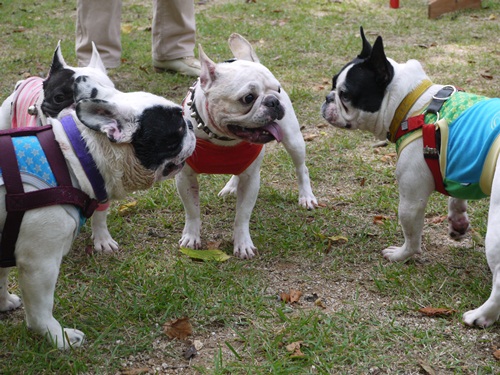 三瓶山その1 おでかけ 2012年10月14日 comment(0) http://j24h.blog.shinobi.jp/Entry/923/三瓶山その1 朝からハイテンションなふうさん。おでかけアンテナが気配を察知。すでに戦闘モードか?!でかけたいくせに、素直じゃないふうさんは、階段の上でダダこね中。昨日は、最高にお天気も良く、風もおだやかで、ブヒを連れての絶好の山遊び日和でした!ラン姫家からは、ゴッドマザーの姫ちゃんと娘のあくびちゃん。そしてアトム&ゼクス家、そして我が家のふう&大左エ門、以上6ブヒと人間7名で三瓶山へ行ってきました!!まずは、三瓶山のドッグラン。受付の番号札が14番だったので、先客が多いのかなと思ったら大型犬コーナーも小型犬コーナーもまったく誰もいず・・・。ふう「きゃっは~!貸切じゃん!やりたい放題だがね!」いやいや頼みますよ。ふうさん、あんたのバカ力を自慢げに披露せずともよいのでね。まずは、いきなり?!姫さんゴロゴロ~っと一発!姫「かい~のぉ~」そんな姫さんが、めずらしかったのかゼクスとアトムくんが注目(笑)いつもは他のワンがいるとリード着用のふうさんも今日は、知り合いのブヒちゃんオンリーだったので、ほぼ初のドッグランフリー!ふう「ねぇねぇ、オラちゃんと遊ばな~い?」ふうさん、あくびさんをナンパ中・・・・。あくび「ふんっ、あんなじぃさん相手にしてられないでち!」そんなあくちゃんを狙うゼクス大左エ門「このオバハンになら勝てるかな?」いつもふうさんにやられているので、自分より弱い相手を探す大左エ門姫「このガキ、なんだか気に入らないでちよ!」どうやら大左エ門の第一印象は悪かったようだ・・・。かくしてブヒ貸切状態のドッグラン劇場が始まったのである。乞うご期待?! 【ランキング参加中】お気に召したらバナーをクリックしてくださいね。