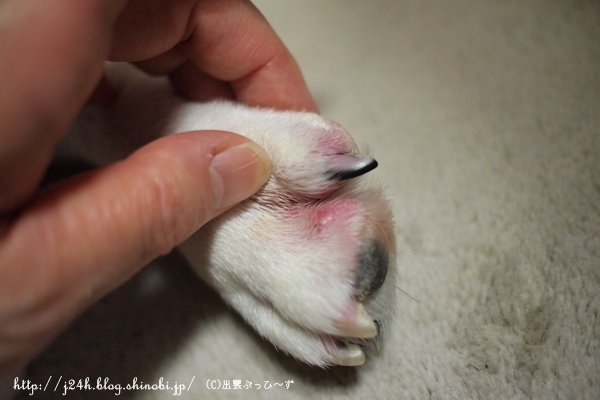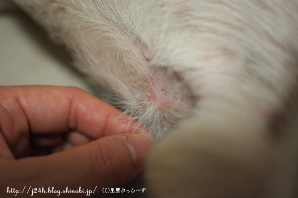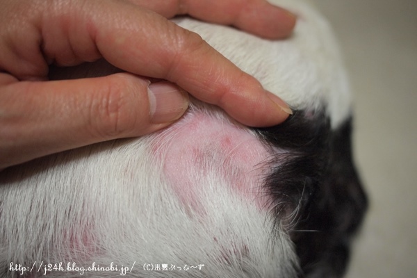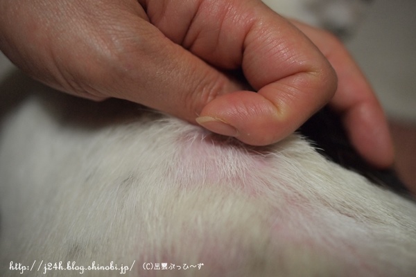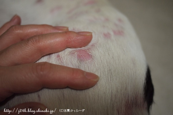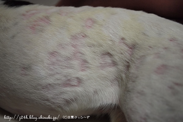 続ふうさんのハゲ日誌 ふうのこと 2013年09月08日 comment(3) http://j24h.blog.shinobi.jp/Entry/1012/続ふうさんのハゲ日誌 ふうさんのハゲは、よくなっていっているところと、炎症中のところと色々です。 見た目は相変わらずまだらハゲ。この写真でもわかりますが、白い毛が黄色くくすんだところがあります。そこの地肌は、赤味があったりしてあまりよくなく、ハゲが広がっていきます。あまり抜け毛がないふうさん、新陳代謝が悪いのかも。。。と思います。一度ハゲて生え変わったところの毛は元の白いきれいな毛が生えています。 地肌がキレイになってきて新しい毛が生え始めた箇所。 まだ炎症中の箇所。 ただいま下半身がよろしくない。これは、お尻のところ。ところどころ赤い湿疹が見えます。前日にグルーマーズ・グープクリームで皮脂を洗い流しているので湿疹はありますが地肌はキレイです。ひどいときは、悪いところの毛の根元には、皮脂の塊みたいなのがついています。それが落ちないとどんどんハゲが広がっていく感じでしたが、シャンプーではなかなかキレイに落とせません。グルーマーズ・グープクリームでマッサージしながら落としています。これで洗ったからといってすぐに湿疹が治るというわけではありませんが、人間でいうところの古くなった角質をキレイに落として肌を再生させてくれる・・・そんな感じがします。ただシャンプー前にひと手間かかるわけで、時間的にはシャンプー時間が長くなるので大変ではありますが・・・。水も使うしね(汗) これは首の付け根の部分。ここは特に瘡蓋みたいになってしまって、なかなかよくならないです。ただ赤味はずいぶん引きました。 これはオチンチンの近くお腹側です。ここは毛の根元に皮脂が付きかけてます。なかなかお腹側は、洗っているときに仰向けにできないので、目で見て洗えなくて、Goopでのマッサージが難しいです。今度洗うときは、お腹まわり中心にマッサージしてみたいと思っています。というわけで、ハゲのほうは、シャンプーやサプリで時間がかかってもなんとかなりそうな気配だったのですが、どうもね趾間のほうがね・・・・。 これもマスマリンリキッドをぬってシッカロールを前日にはたいておいたら写真のようにマシになったんですが、ひどくなるともっと赤く血豆みたいにぷくっとふくれて出血したりするので、これがなかなか治らない。あまりに治らないので、結局昨日、病院へ行って抗生剤を出してもらいました。本当は、抗生剤なしでハゲの様子を見たかったのですが、この趾間はヤバそうなので仕方ありません。20日間抗生剤のお世話になります。因みにサプリはアニマストラスとドッグレスキュージャパン ポチの味方 90gをお試し中です。 【ランキング参加中】お気に召したらバナーをクリックしてくださいね。