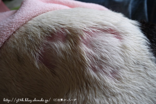ハゲ ふうのこと 2013年06月03日 comment(5) http://j24h.blog.shinobi.jp/Entry/998/ハゲ あ~また夜中になったぁぁぁぁぁ。明日も睡眠不足決定だな。最近、ずっとこんな調子で夕方、帰るとき車の運転が眠くて眠くてヒヤリハットな時が先週2度ありました(涙)やばいよ、やばいよ~。疲れてるよ~。と言いながらブログUPしようとしてるし。そんな自分の叫びの主張はさておき 、ふうさんのハゲ。みごとでしょ~。って自慢することではないけど、一昨年は10円ハゲが数多くでき、昨年はハゲず、今年は数は少ないけどひとつのハゲが大きい・・・・と毎年のようにハゲの形態が違う。一昨年のハゲはしっぽのところまで、ハゲたのだけど、そういえばあの時、かなり丁寧にハゲの部分をシャンプーしたらキレイになったなという記憶がよみがえったので、今日はふうさんシャンプータイムで、だいぶ丁寧にハゲ中心にシャンプーしました。ハゲの際の地肌が赤くなっちゃったけど、そのくらい毛の根元の皮脂の塊みたいなのは、キレイに取り除いたほうがいいみたい。仕上げは、バイオチャレンジの希釈液を身体にかけてタオルドライです。基本、濡れるのが大嫌いなふうさん。特にシャンプーは香りのするもので洗うと大変嫌がります。なので、泡立たないけど汚れが落ちているらしい、須崎動物病院のマジカルシャンプーで洗います。このシャンプーは、匂いがないので、ふうさんも割と大人しくシャンプーされてくれるんですよね~。洗い上がりは、乾くとふわっとさらっといい感じに仕上がります。マジカルシャン(1L)&泡立ちボトル付き(無地) ¥6,825苦手なシャンプーを終えてストレス解消にガジガジ。このあとハゲちゃんには薬(ステロイド薬)もぬっておきました。この程度ならまだ飲み薬は不要です。今日はだいぶキレイにハゲちゃん中心にシャンプーしたのですが、さて効果は出るかなぁ~?もう一度ぐらい来週、洗ってやるといいかもしれませんが、様子をみてみたいと思います。当の本犬、さして痒いわけでも痛いわけでもないみたいだけど。なんだかんだと元気でいてくれるから感謝です。 【ランキング参加中】お気に召したらバナーをクリックしてくださいね。