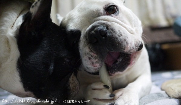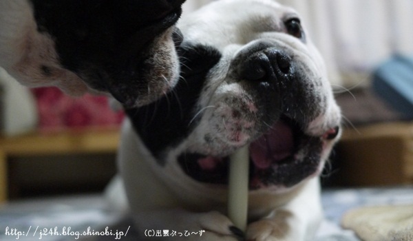 ガジガジ ふうのこと 2013年02月09日 comment(0) http://j24h.blog.shinobi.jp/Entry/959/ガジガジ はぁ~。なんか寒いね。寒いけど今日は朝からブヒ部屋を大掃除したよ!ブヒ部屋って、やっぱり案外オチッコで汚れてるんだよね~。この間から匂いも気になってたし久しぶりにスチームで拭き掃除してスッキリ!加湿噴霧器にバイオチャレンジを希釈して入れて除菌もね。強力消臭 強力除菌 次亜塩素酸水 弱酸性インフルエンザ予防ジア・アクア専用超音波噴霧器+5...価格:19,800円(税込、送料別)↑今コレかなりお買い得な値段で売ってる~。ジアアクア専用と書いてあるけど、バイオチャレンジを10倍ぐらい希釈したものを入れても今のところ使えています。さてふうさん、ガジガジを堪能中。あんのぉ~ワタクシにもがじがじをひとつくだせー。@で~ざえもんふうお兄さんに「ちょーだい」って言ってごらんよ。(多分くれないだろーけどさ)あんのぉ~もしもし~ @で~ざえもんうぜ~ @ふう兄ワタクシもそいつがほすぃ~んでつが・・・ @で~ざえもんん?やっとあきらめたか。。。@ふう兄(ふうさんの口の上の傷は、先日大左エ門にがぶられた跡)まだオラちゃんが、ガジガジするんだもんね~っ @ふう兄さて、もうひとかじりすっかな @ふう兄 【ランキング参加中】お気に召したらバナーをクリックしてくださいね。