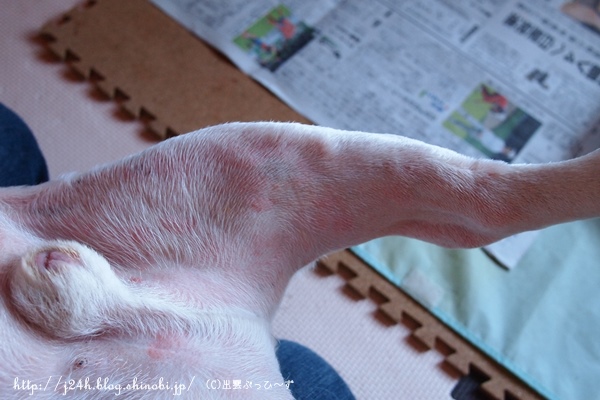 連休中に続いた不調 食事と健康 2013年09月23日 comment(3) http://j24h.blog.shinobi.jp/Entry/1016/連休中に続いた不調 この3連休。まるで大殺界?!まず土曜日から日曜日にかけての夜中。ふうさんが、バタバタしてハァハァしているな・・・と思って起きると、どうも右耳がカユカユらしく、しきりと耳を床にこすりつけたり頭を振ったりしていた。ふうさん、たまに夜中になぜかしらバタバタして息切れすることが今までもあったのだが、今年の7月以降、その回数が増えている。原因がわからないこともあるのだが、今年の夏の何度かは耳がカイカイらしくしきりと耳を床にこすりつけたり頭を振ったりしている。耳を掃除してやると1時間以内には落ち着いて寝てくれるし、昼間はそういうことは起きないので何故に夜中だけなのか、いまだ謎。で、土曜の夜中も耳掃除をして、30分ぐらいしたら落ち着いてくれ、朝には何事もなかったように普通に過ごしていた。ただ最近、ふうさんの耳には黄色いベタっとした耳垢がたまる。黄色の耳垢が出るときは化膿性外耳炎だとか・・・。細菌性のものなのかアレルギーなのか・・・。7月に一度主治医には「カユカユで寝れないみたいでー」と話したらその時には、少し耳が赤くなっている感じがあったのでステロイド剤を出されたのだけど・・・・。今のところひどくないので、今度、病院に行ったときにもう一度相談してみようかなぁ。そして日曜の夕方・・・。午後からのんびりとひなたぼっこしながら寝ていた大左エ門の顔を見ると、口回り、鼻回りが真っ赤に腫れていた。蚊にさされたの?みたいな鼻まわり。目の周りも赤くはれてる感じ・・・。ビッグウッドの愛犬活力源やら乳酸B薄め液やらで拭いてやると少し口回りは引いたか?と思ったのもつかの間、晩御飯前に2度嘔吐。といっても胃液した出てこなかったけど。ご飯はいつものように食べたけど、しばらくして全部戻してしまった。そして水をがぶ飲みしては、また嘔吐。少し引いたかと思った腫れもやっぱりマッカッカ。目の周りはむしろひどくなってきた。お腹側も赤く、発疹が大きくなったような・・・コレって蕁麻疹じゃないの?!夜中にも4回ぐらい水を飲んでは吐いたようだ。朝起きると口回り鼻回りは、だいぶ腫れが引いていたが、目の周りは腫れぼったく、お腹側の蕁麻疹も健在。朝ごはんもほとんど口にせず、病院行き確定・・・。 でも祝日って主治医のとこは休みだし、休診の病院が多いんよねぇ。田舎だから救急で診てくれるとこもなかなかないのが現状。それでも数少ない祝日午前中診療してくれる病院へ朝いちばんで行き、コレコレしかじかと問診を受け、なんらかのアレルギー反応でしょう・・・とのこと。そーでしょーねー。 (今朝の写真なので、鼻口まわりは、ほとんど腫れがひいています。まぶたの内側に浮腫が残っていますが、写真ではわかりにくいですね。)突発で起こったアレルギーの原因なんて飼い主にもわからないので、当然、獣医にわかるわけもなく、ステロイドの注射と吐き気止めの注射と2本も注射を打たれた大左エ門。2本目のは「ちょっと痛いかもしれません」と獣医さん。でもちょっと「チクっ!」としたような顔をしたものの鳴きもせずあばれもしなかったので獣医さん拍子抜け(笑)注射をしたので、大左エ門は隔離です。 ふうさんも心なしつまらなさそうだけど、しかたないですよー。夕方近くになってから大左エ門もフリーにしましたが、結局、自分の部屋のベッドで寝ていました。今もグーグーいってよく寝ています。午後からシャンプーもしてやりました。だいぶ、お腹周りの蕁麻疹もひいてきたようです。目の周りの腫れが一番ひどいかなー。特に下まぶたの浮腫が、まだまだ元に戻っていませんが・・・。しかし一体、何に反応したのかまるで謎。蕁麻疹などのアレルギー症状は、犬の場合、数時間以内に出るものらしいですが、大左エ門は、ひなたぼっこして寝てただけだからねぇ。普段と変わったものを食べたわけでもなく、もしかして陽射し????と思ったり・・・。そういえば、こんなにひどいのは初めてだけど、口鼻まわりが同じように虫刺されのように赤く腫れたことは前にもあったなぁと思いだしました。やっぱり虫さされ?しばらく様子見のぶっひ~ずです。 【ランキング参加中】お気に召したらバナーをクリックしてくださいね。