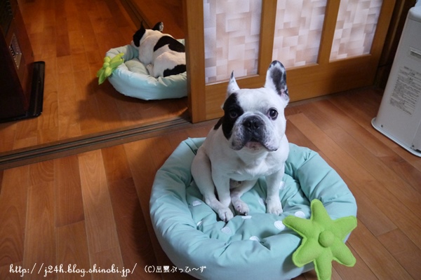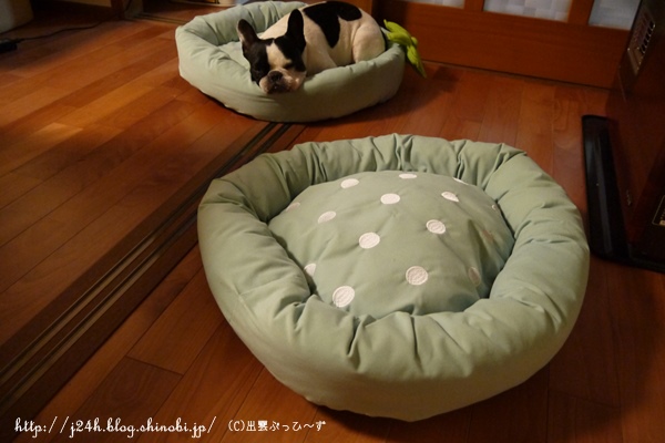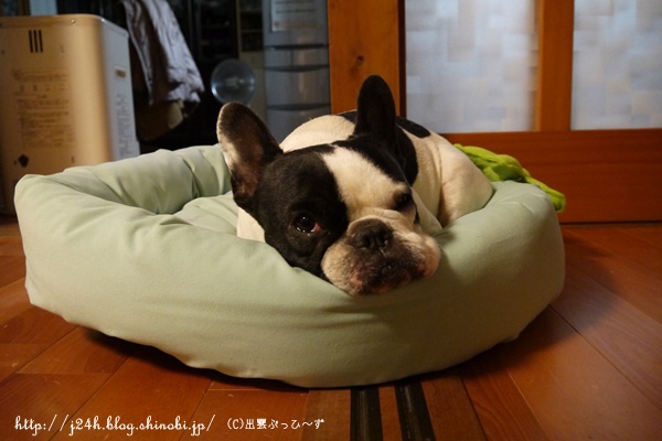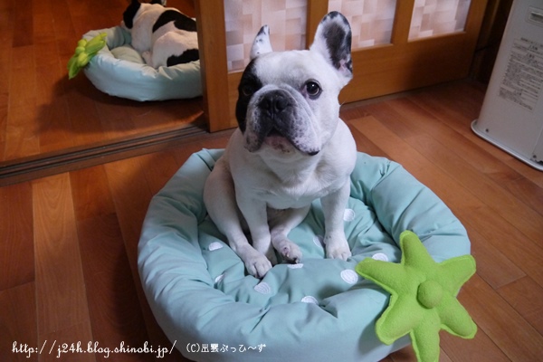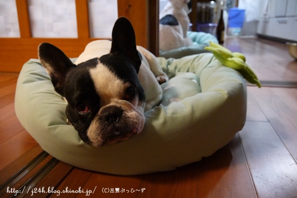 青いイチゴ 日常のこと 2013年12月23日 comment(1) http://j24h.blog.shinobi.jp/Entry/1027/青いイチゴ 少しずつ2階生活から1階にいる時間を長くしていっている今日この頃の出雲ぶっひ~ずです。1階にはキッチンがあるので、特にふうさんは、なかなか落ち着きません。今日は、ホームセンターに行ったらお値打ち品の犬用ベッドがあったので購入しました。青いイチゴなベッド。一個980円なり。いかにもおいしくなさそうな色合い。青いイチゴなんて。なぜに青?ふうさんは、さっそくヘタの部分を食いちぎろうとしていましたが、とりあえず阻止しました。まぁ食いちぎられるのも時間の問題かと思いますが。 大左エ門は、例によってヒーター前のベッドを陣取りました。 はぁ~ぬくいのたまらんねぇ。@大左エ門あなたは、ぐうたらなので、とても扱いやすいです。キッチン側に陣取るふうさん。常におこぼれちょうだいオーラを発しております。食欲旺盛。元気ハツラツなふうさんですが、この土曜日にワクチン注射に行ったら1キロほど体重が減っていました。確かに少しばかり朝のフードを夏場に減らしたのですが、10月だったかに健康診断に別の病院に行ったときは13キロちょいあった体重が、今回12.3キロほどにダウン。そんなにフードを減らしてるつもりはないのですが・・・。どっか悪いんじゃないでしょうね?ガンとか・・・。そしたらかかりつけの獣医さんが「7歳だし、一度検査しとく?血液検査と膀胱もエコーかけてみてあげる」と言ってくれました。10月の血液検査では特に問題がなかったのですが、それは伏せておいて、1月の終わりか2月に入ったらかかりつけの病院でも検査してもらうことにしました。健康で単に体重が落ちて絞れただけならいいのですが・・・。最近、特に食欲旺盛に見えるのは、ご飯が足りてないのだろうか????なんて言っていたら・・・あら・・・・?いちごのヘタが・・・・ない・・・・。 やってくれたわねっ! ワタクスではありませんよ。ぬれぎぬはまっぴらゴメンです。@大左エ門青いイチゴのヘタを食いちぎりたくなるほど、ふうさんは、飢えているだろうか・・・。 PR 【ランキング参加中】お気に召したらバナーをクリックしてくださいね。