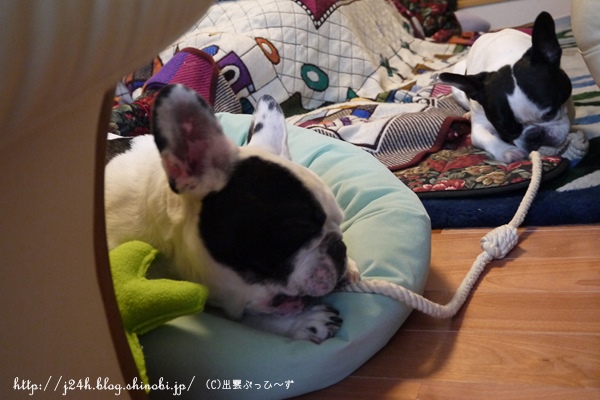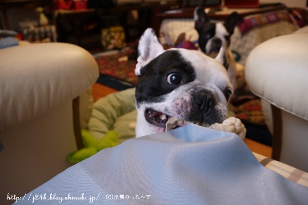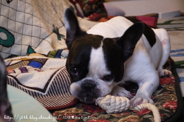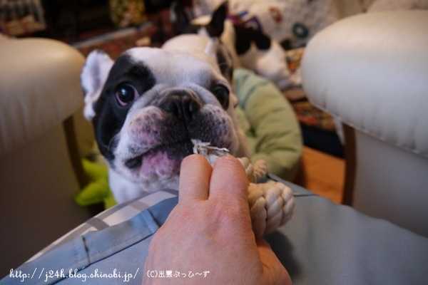 お誘い 日常のこと 2014年03月16日 comment(1) http://j24h.blog.shinobi.jp/Entry/1045/お誘い お休みの日といってもいろいろすることはあるわけで、今日も午前中はぶひ部屋の片づけ。午後は庭掃除とアイロンかけ。そんなことをやっているとなかなかぶひと遊ぶ時間もないのだけど、アイロンかけをはじめるとふうさんがロープを持ってやってきた。「これで遊んでくだつぁい@ふう」今アイロンかけしてるんだけどなぁと思いながら片手でロープを受け取る。 しばらく左手でひっぱりっこをしながら右手でアイロンかけ(笑)でもまったく作業効率が悪いわけで、すぐにロープから手を離すと、またもやふうさんがロープを持ってくる・・・を何度か繰り返した。 「ワタクスも遊びたいのでつが・・・@大左エ門」ふうさんが独占しているので、なかなか大左エ門にまわってきませんねぇ。 大左エ門は、ひっぱりっこではなく、ひたすら食う(笑)なので気を付けないと、気が付いたらロープがバラバラにほどけていて本当に食べているときがある。 そうそう2ぶひでそうやって遊んでいてくださいな。と思ったんだけど・・・ ふうさん、おもしろくなさそうな顔ですね(-_-;) PR 【ランキング参加中】お気に召したらバナーをクリックしてくださいね。