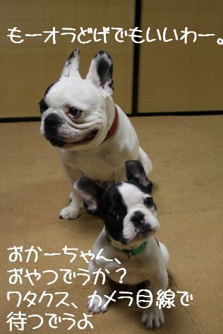 でしゃばり大左エ門の巻き 大左エ門のこと 2008年06月14日 comment(5) http://j24h.blog.shinobi.jp/Entry/200/でしゃばり大左エ門の巻き 13キロを越えたので500g落とすべくダイエットに励んじょー、ふうたれです。ふうたれのベスト体重は12.5gとおもっちょーます。さて今日は、でぇ~ざえもんのでしゃばり本性をUPするけんね~。見てごしないや~。ふうたれの平和な時間。が、そんなに続くわけもなく・・・またまた困り顔のふうたれ ~ったく、でぇ~ざえもんはズーズーしいがぁ。そうだねぇー、オラのだよ。ふうちゃん、もっと主張していいけんね。率先してやってくるでぇ~ざえもん。しかたなく来るふうたれ。ハイ、2ブヒともこっちに来たらお座りだよー。つーか、でぇ~ちゃん、あんたは兄ちゃんの後ろで座わーだがねぇ。おやつは兄ちゃんが先だけんね。あんたは、なんでも後だけんね。心得ておくように!ふうたれ、投げやりだねぇ。大左エ門、いくらカメラ目線してもおやつはふう兄ちゃんが食べた後だけんね! PR 【ランキング参加中】お気に召したらバナーをクリックしてくださいね。
