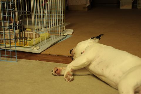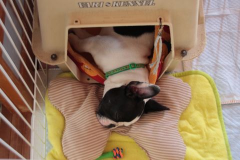 寝場所の巻き 日常のこと 2008年07月08日 comment(2) http://j24h.blog.shinobi.jp/Entry/224/寝場所の巻き 大左エ門は、だいぶクレートが寝床というのも定着しつつあるようで、夏は暑いかなーと思っていたが、外とクレートと行ったりきたりしながら上手に寝ている。最近は、クレートに入っていても身体が一部、外に出ている。外に枕を置いておくと上手に枕を使っているところが、ふうたれと違って器用だなと思う。 一方ふうたれは、部屋の真ん中、部屋と部屋の間の敷居にアゴまたは顔をのせて寝るのがマイブームらしい。もしくはサイドテーブルの側面に背中をくっつけて寝ている。暑くなってきたので留守番中もふうたれは、あまりケージの中に入らなくなってきた。日曜日にワンコたちのケージを部屋の中央に移動したのだが、ふうたれは、エアコンの涼しい風が当たりやすいところで居心地よく過ごしていると思われる。たいしたもんだ。 PR 【ランキング参加中】お気に召したらバナーをクリックしてくださいね。