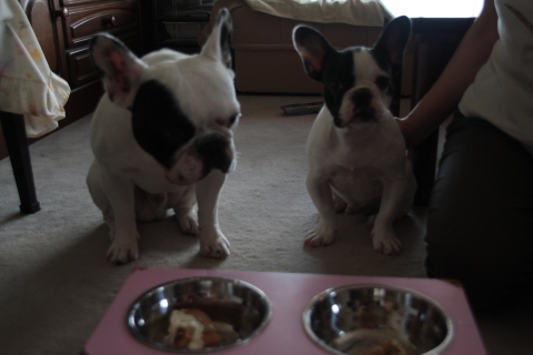 1週間遅れのケーキの巻き 日常のこと 2008年08月09日 comment(5) http://j24h.blog.shinobi.jp/Entry/241/1週間遅れのケーキの巻き 遅ればせながらふうたれの誕生日ケーキが到着した。因みに奥は人間用(こっちがメイン?)ロウソクも2本。なんにでも敏感なふうは、ロウソクの火にちょっとビビリ気味(笑) かーちゃん、早く切り分けてください・・・よだれが出ます。大左エ門もご相伴に預かるとするか2ブヒともこういうときは、ケッコー大人しく待つ。では、では、いっただきま~す2ブヒ仲良く並んで食べる意外とケンカしない。早く食べ終わった大左エ門、ふう兄ちゃんが気になるふうたれ目が真剣すぎて怖いんだけど・・・。うまうまかい?大左エ門、あんたの顔が入るスキはありませんからぁ~ざんね~ん! PR 【ランキング参加中】お気に召したらバナーをクリックしてくださいね。