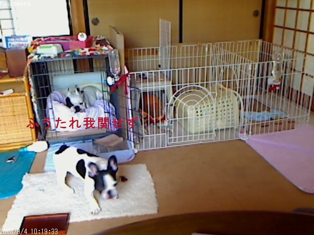 大脱走計画の巻き 日常のこと 2008年09月05日 comment(6) http://j24h.blog.shinobi.jp/Entry/264/大脱走計画の巻き へい、まいど!だんだんねぇ。おとといの散乱状態には、おべたシ(人)も多いかもっしぇんけど、機能は、さらに脱走計画を計った大左エ門。「解説」まずクレートの上の洗濯かごをどーにかして墜落させることに成功した大左エ門。あとは、簡単にクレートの上に乗り、さらにふうのケージの屋根の上に乗る。ここで消臭剤などをご馳走になられたらしい。 ふうたれのケージの脇に置いてあるチェストの上の物を落として、足場をつくり地上に降り立った大左エ門。しきりとふうたれに絡もうと頑張るが、当のふうたれは、「おまえなんかシラン」を貫いた様子。数分ごとにWEBカメラからの映像を確認する私。仕事どころじゃないが、昨日はうちの係りは私しかおらん。あとは出張にいっとるで、帰るに帰られん。ダンナにヘルプ!さいわい本当にふうたれが、大左エ門の誘いに乗らずケージの中から出てこない姿勢をつらぬいてくれたので、大左エ門脱走2時間後、ダンナが帰宅するまでバトルはなかった模様。ダンナが帰宅してみると、大左エ門だけ息があがっていて、2箇所ほど吐いたあとがあったらしい。多分、ご馳走になった消臭剤かなんかの影響か?まー元気なんで、心配するほどではなさそうだ。そしてふうたれのトイレで大左エ門ウンチを一発残していたらしい。(なぜかウンチだけは、失敗がほとんどナイ)というわけで、私の帰宅後、クレートの上に再び屋根をつけた。サークルから脱走するなんざ100年早いわぁ~~っ PR 【ランキング参加中】お気に召したらバナーをクリックしてくださいね。