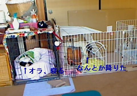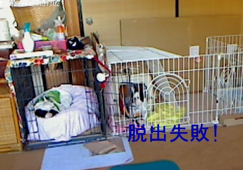 2度目の脱走計画の巻き 日常のこと 2008年09月09日 comment(2) http://j24h.blog.shinobi.jp/Entry/267/2度目の脱走計画の巻き サークルの上に屋根をつけたので、これで脱出は不可能だと思われる。が・・・・一応、試みたらしい。クレートの上に乗っている。しか~しっ!そんなに美味しい出来事は何度もないのだ。柳の下にどじょうは、もういないのだ。あとずさりして降りれないので、無理やり脇から降りたらしい。(この日、私が帰宅してからネットの下も動かないように、紐でくくっておいた。)ふうたれ、そんな騒ぎなど、我関せず、今日も寝る。大左エ門、残念だったな。ふっふっふ。おまえの好きなようにならんのだよ。 PR 【ランキング参加中】お気に召したらバナーをクリックしてくださいね。
