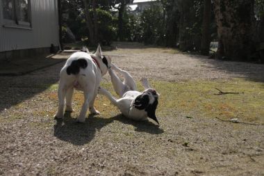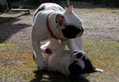 外バトル 日常のこと 2009年02月15日 comment(1) http://j24h.blog.shinobi.jp/Entry/345/外バトル ふうの体調も完全復活したらしい。お天気が良かったので、午前中1時間ほど庭で久しぶりに遊んだ。バトル開始 さっそく大左エ門ひっくり返りました!ゴロンゴロン転がっています。ふう兄ちゃんが上に乗って攻撃です。出ました!大左エ門の必殺技「噛み付き攻撃」です。またしても大左エ門、ふう兄にひっくり返されました!開脚技です。ついに降参したか?大左エ門・・・・カンカンカンカーン!!!!終了! PR 【ランキング参加中】お気に召したらバナーをクリックしてくださいね。
