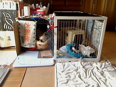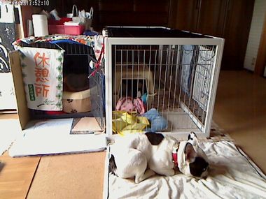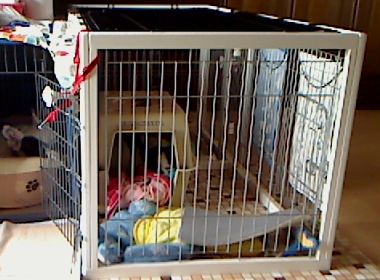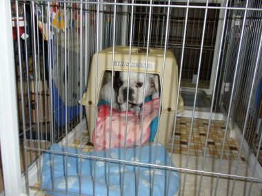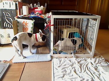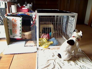 大左エ門、またまた、かーちゃんが出かけたとたんクレートの中の