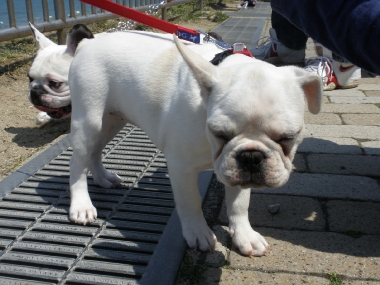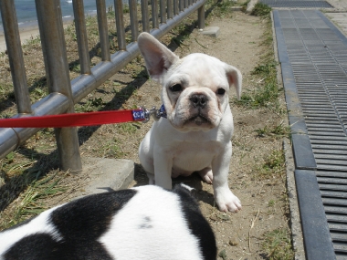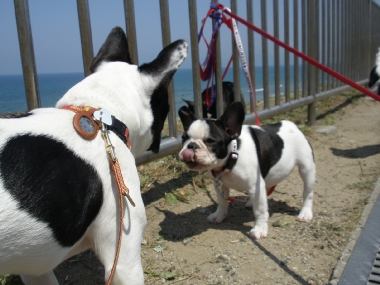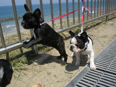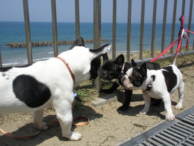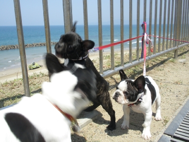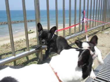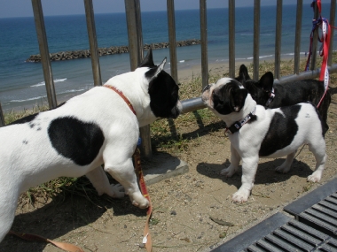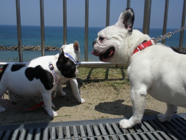 出雲の国のソックリさんの巻き 日常のこと 2009年04月29日 comment(2) http://j24h.blog.shinobi.jp/Entry/374/出雲の国のソックリさんの巻き ん?でーぜーもん、なんか小っちゃくなったか?あで?ワタクスがいる・・・。あで?そしたらワタクスは誰? もう。しっづれいしちゃうわねぇ~アタチが、あのジャイ子よぉ。アタチは、あくびよん。というわけで、きらら多伎に集合したフレブル集団。念願のラン姫ちゃんとこのパピコちゃんたちに会うことができましたよぉ!残念ながらラン姫ちゃんとのご対面は次回となりましたが、かわい~盛りのパピコたちプラスふうたれと大左エ門の集団に世間の目は釘付け・・・だったかどうかは、わからんけどもそれなりに注目を浴びつつ風に吹かれて、海を眺めながらのご対面。めずらしく、ふうたれも女子のパピコには、あまりヒートアップせず、無意味にかみつくこともなく近寄ることができた。おぉ~、どうしたふうたれ?と思ったが、ほかのワンコがくると目が血走ってロックオン状態。パピコがわんこらわんこら騒ぐと、ふうたれも血が騒ぐらしくヒートアップ。それでも落ち着くと女子パピコには、比較的穏やかに近づくふうたれ。一体、何が彼(ふう)をそうさせているのか?謎だ。一方3ヶ月のパピコに同程度と思われたのか大左エ門は、ジャイ子とつくしに食ってかかられる始末。アタチに、何か用かちらん?そこのブチャイクな男子ィ。何よ、文句あんの?つくしちゃん、ジャイ子ちゃんと一緒だと、かなり強気。ブチャイクな男子ィは、あっち行ってごしないっ。あくびちゃんは、高みの見物。一方、陰で頭と心を冷やすふうたれ。いやー楽しかったわぁ。もちろんラン姫ママさんとも初対面だったわけだが、ぜんぜん初対面って気がせんし、またぜひぜひ遊んでやってくだせー。お土産までいただいて、こっちは残り物のひづめでスマン。どっかもっと茶でも飲みながらゆっくる過ごせるとこがあーといいけどねぇ。というわけで、そんなゆっくり優雅に過ごせるおしゃれカフェはないけど、出雲の国に来る!というあなたの街のブヒちゃんがいらっしゃいましたらぜひ、声をかけてください。ラン姫家、ふう&大左エ門家がお待ちしておーますけんねぇ。 PR 【ランキング参加中】お気に召したらバナーをクリックしてくださいね。