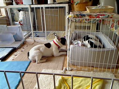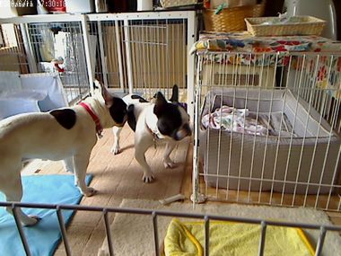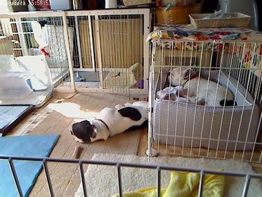 今日の2ブヒの留守番画像の巻き 日常のこと 2009年06月11日 comment(3) http://j24h.blog.shinobi.jp/Entry/387/今日の2ブヒの留守番画像の巻き いつもは、大左エ門はサークルの中で、ふうたれも最近は、一部屋フリーをやめてある程度、サークルで部屋を仕切ったスペースで過ごさせている。しかーし、今日は、思い切って、大左エ門のサークルの扉だけは開けて出かけてみた。バトルでケガをしたり、バトルで熱中症で倒れたり、大左エ門がおもらししたり・・・などという不安要素は多々あった。何しろ12時間ほどの留守番だからねぇ。おもらしは、ともかく、あとの二つの心配は、重大事故になる可能性だってある。朝方、とーちゃんが出かけるまで2ブヒはバトルをしていた。ふうたれ、真っ赤なお目目でハァハァして、まんまる顔になった。そして私も出かける時間。とりあえず大左エ門をクレートに誘導して、2ブヒに一口づつおやつを与え出かけた。バトルになったときは、部屋をサークルで仕切っているので、狭い場所でのバトルになる。窓際なので日当たりもいい。かなり心配。かーちゃんが出かけると、案の定、大左エ門はクレートから出てきてウロウロ。ムムム。大丈夫か?何度も携帯でWEB画像を確認する。ところが、意外にも大左エ門は、あっさりとまた自分のクレートにひっこんでしまったらしい。しばらく大左エ門のサークル前で、ふうたれは構えていたが、そのうちふうたれも自分のベッドに入って寝てしまった。 ほほぉー。こりゃまー平穏なことで。。。そして大左エ門がクレートから出てきたのは、お昼をまわってしばらくしてからだった。そしてふうたれのベッドに、大左エ門がお邪魔虫。大左エ門、我が物のようにベッドで寝る。ふうたれは、あんまりくっつきたがらないのでベッドから出てしまったようだったが、そのうち自分もベッドに入って2ブヒ仲良く同じベッドで寝ていた。そして、午後の日差しが部屋に差し込む頃には、大左エ門は日向で、ふうたれは、ゆっくり自分のベッドで寝ていた。なんとなく2ブヒとも満ち足りた一日だったようだ。めでたし、めでたし。 PR 【ランキング参加中】お気に召したらバナーをクリックしてくださいね。