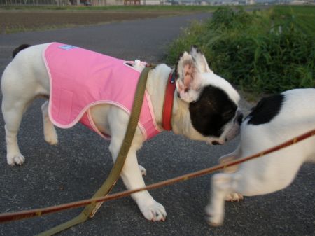 クールベストでお散歩の巻き 日常のこと 2009年06月23日 comment(4) http://j24h.blog.shinobi.jp/Entry/394/クールベストでお散歩の巻き 今年買ったクールベスト。今日、初めて着てお散歩に出てみた。大左エ門は、まぁまぁピッタシ。ふうたれは、ちょいとブカブカ気味。フレブルの体型は難しいねぇ?。 少々、水を含む分、重たいけど、着てるほうが着てないよりよさげだ。 といってもふうたれのやつは、大左エ門のおけちゅ嗅ぎをしては、ハァハァゼーゼーと息があがる(笑) いや?ん、やめて?。大左エ門の困り顔が、おかしい。 ふうたれくん、ちょいとしつこくて嫌われる。 今日は、わりと風もさわやかだったせいか、お留守番も2ブヒともほとんどハウスの中で寝ていたようだ。大左エ門などはクレートの中だから暑かろうと思うのに、ずーっとクレートの中にいた。湿気が少ないのが何よりだったねぇ。 PR 【ランキング参加中】お気に召したらバナーをクリックしてくださいね。