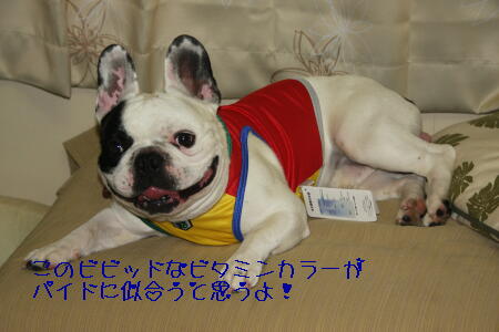 おNEWな服 Byブルドスさんの巻き 日常のこと 2009年07月08日 comment(5) http://j24h.blog.shinobi.jp/Entry/401/おNEWな服 Byブルドスさんの巻き なかなか2ブヒ分の上等な服は買えないが、今回、思い切って2ブヒ分の服をブルドスさんで購入した。まず大左エ門。今までふうたれのお古とか、980円のホームセンターで売ってる普通のサイズまったく合わずの服とかだった。 ぬぁんあとちょこっと大きめパピコサイズのXSサイズ?♪ 胴回りピッタリ。だけど、丈、超短い。やっぱりもうワンサイズ上でもよかったかもねぇ。それより大左エ門の身体がいかにアンバランスかということである。胴だけは長くなったが、実は身体つきは、体重に比べてこじんまりしているのだ。小さいときに成長しなかった何らかの障害は、やっぱり引きずっている。なのでフレブル用の服といえどもなかなか大左エ門に合う店はない。ブルドスさんは貴重なショップであ?る。 一方ふうたれくんのは、こんなにカラフルでカッチョイイ服 パーカーになっていてフード部分に保冷剤が入れられる。 冬ものならふうたれももうワンサイズ上でもいい感じ。そしてコレ カラーに装着できる保冷剤ケース。ビニールに入れた氷を入れることもできるというのがミソ。 背中からみると一層かわいい・・・(服が) かーちゃん、冬物もよろつくだつよ。 PR 【ランキング参加中】お気に召したらバナーをクリックしてくださいね。