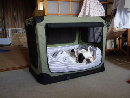 さっそく今日のお昼寝は、このクレートでまったり。抵抗なく馴染んでくれたようだ。
