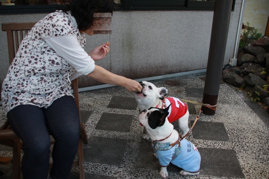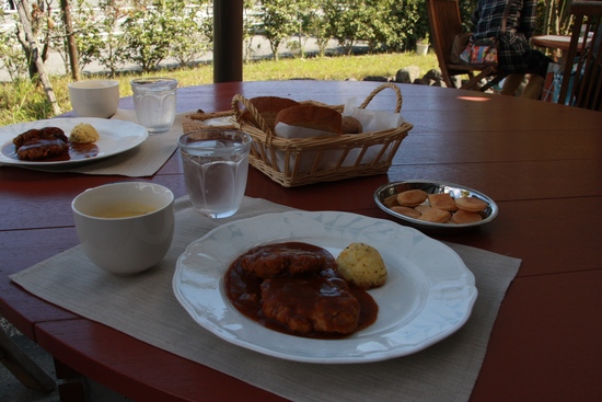 わんこOK ニダ ベイユさんへ行く おでかけ 2009年10月20日 comment(8) http://j24h.blog.shinobi.jp/Entry/473/わんこOK ニダ ベイユさんへ行く 伊勢からの帰り玉城インター(伊勢からの帰り伊勢西の次のインター)を降りたすぐのところにあるカフェ。ニダベイユさんでランチタイムこちらは、テラス席のみワンコOK!5席ぐらいありましたが、お昼前には、満席。ちなみに店内の席は、ガラあき(笑)お天気がよかったせいか、犬づれさんたちがテラス席に集まっていました。犬づれさんだけでなく、どうもフェレットのオフ会らしきものもやっていました(笑)さいわい私たちが行ったときは、一番端っこの席が空いていたのでゲット。ほかのワンが視界に入ると逆上オタケビスイッチオンのふうたれがいるので、端っこの席が確保できたのはラッキーでした。 こちらは人間様のお食事が来る前に、ワンコのクッキーとお水がサービスで出てきます^^他の犬に視線が行かないように、おやつで釣る飼い主。人間様のお食事は、ハンバーグランチを注文。この写真では、地味ですが、このあとコーヒーとロールケーキがデザートで出てきました。パンのおすそわけを貰うために、お利口にしています。本当に、他の犬が視界に入らず、食べ物が目の前にあるときは、素晴らしく集中し、お利口です。いつもこうだったら、もっと色んなところへ連れていってやれるんだけどねぇ。 PR 【ランキング参加中】お気に召したらバナーをクリックしてくださいね。
