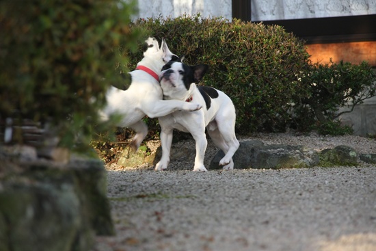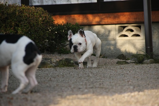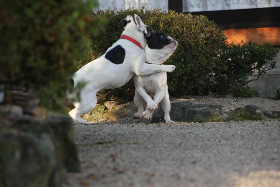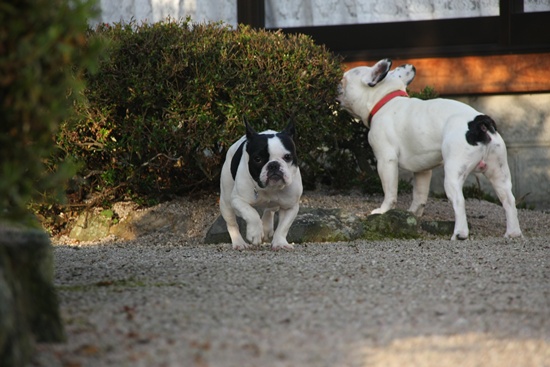 ふう兄貴の仕返し 日常のこと 2009年12月29日 comment(0) http://j24h.blog.shinobi.jp/Entry/493/ふう兄貴の仕返し ふう兄貴が匂いをかいでいると、大左エ門の頭の中では、何かいいものがあるような気がするらしい。自分も参加しようとする。が・・・まったくふうに相手にされることはナイ。新しくできた小庭に佇むふう。(この場所には、つい先日まで、外のトイレ&物置小屋があった)さっき子分に邪魔されたことなど、忘れたかのよう。 おかーやん、この小庭もなかなかいいでつねぇ~。そこから先は、出たらダメよぉー。また子分のやつが、ふうたれの行く手をさえぎるようにカメラ前を陣取る。おけちゅのチェックもするでつよおっと、おけちゅはヤバイ!逃げなくてはっ・・・。べ~っおりゃ~~~~~~~~~~っぎょぉ~っ 不意打ちでつかぁ~~~~っ逃げるでつよぉスタコラサッサ~(いまだに、走ったり、バトル中の画像にピントをうまく合わせられない私)逃がすかってんだよ、コノヤローとりゃぁ~っうりゃぁ~っひぇ~っ ヤバヤバそれにしても大左エ門の舌は長いぞ。おしまい PR 【ランキング参加中】お気に召したらバナーをクリックしてくださいね。