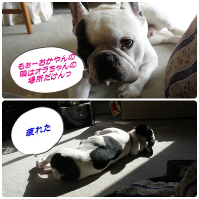 ジェラシー 日常のこと 2010年01月31日 comment(8) http://j24h.blog.shinobi.jp/Entry/507/ジェラシー めずらしく、大左エ門がおかやんの隣でまったりしていた。だいたい、いつもは、ふうたれがまったりする場所である。ふうたれの何とも言えないまなざし・・・。しばらくは、がまんして、そこどけビームを発していたが、大左エ門が、いっこうに意に介さないので、ついに攻撃に出た。 まーこうなると、いつものバトルだ。これでケガをしないのが不思議だ。(多少、かまれた跡が、プチっと赤くなっていることはあるが)戦いが終わって、落ち着きを取り戻した2ブヒ。いろいろブヒたちなりに思いがあるんだろう~な~。 PR 【ランキング参加中】お気に召したらバナーをクリックしてくださいね。