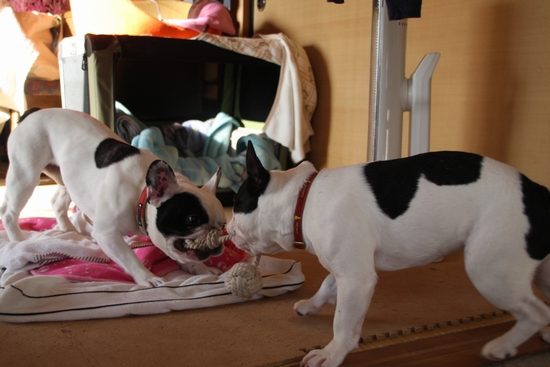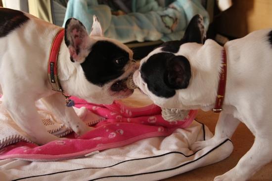ひっぱりっこ 日常のこと 2010年02月06日 comment(2) http://j24h.blog.shinobi.jp/Entry/508/ひっぱりっこ 寒かったですねぇ~。ちょっとここのところ散歩は、ナマケ気味。まっ無理しない。無理しない。無理すると身体に悪いでございますからねぇ。(おかやん、都合よすぎでつよ)ちょっと運動不足なので、綱引き大会でもすっかね。 よ~い、はじめっ!大左エ門、身体は小さいけど、負けてない。2ブヒで遊んでくれると主はラクだわ大左エ門の足もこの頃、調子がよく、薬を飲まなくなったもののフラフラ感が、かなり少なくなってきた。ちょっと筋肉もついたような気がする。ちなみに大左エ門のフードは森永のスーパーゴールドNEOのアレルギー用。フィッシュアンドポテト。実は、このフード、ネットショップで買うとブリーダーパックのためかなり安い。大丈夫なのか?という不安がなきにしもあらずなのだが、案外、大左エ門には、合っているのかもしれない。ちょうど1歳半を過ぎて、ここ数ヶ月、身体が出来上がる時期だっただけかもしれないが、身体がしっかりしてきた。ちなみに、この大左エ門用フードをふうたれに差し出すと「これは食いモンじゃない」とソッポを向く。本当にこのフードは、大丈夫なのか・・・・????(汗) PR 【ランキング参加中】お気に召したらバナーをクリックしてくださいね。