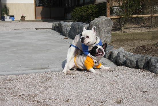 バトルしすぎですから! 日常のこと 2010年02月13日 comment(2) http://j24h.blog.shinobi.jp/Entry/510/バトルしすぎですから! この1週間、雨ばっかり。雨の日は、基本、散歩なしの我が家。今日は、1週間ぶりに、ゆっくりお散歩。ふう :散歩、いこーぜぇ~川べりによくいる青鷺。散歩から帰ってから、さらに庭で遊ぶ2ブヒ先週、届いたNEWラグランシャツは、初めてのお揃いの服。で、一見仲良く庭で遊ぶかと思いきや・・・ これだ・・・エロを通り越して、DVだね、こりゃ。家の前で、大暴れ。庭の後ろにまわっても・・・どっちが追いかけてるのかよくわからない・・・。ごらぁ~っ まてぇ~っふう :つかまえたぁ~~っ大左エ門 :ぎゃぁ~っ やめでぇ~~~~~~~っぜーぜーはぁーはぁーの大左エ門大左エ門 :あ~災難、災難エネルギー有余っているふうたれは、ものたりなさそうだった。 PR 【ランキング参加中】お気に召したらバナーをクリックしてくださいね。