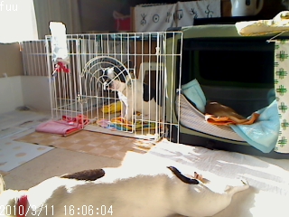 続・留守番 日常のこと 2010年03月11日 comment(0) http://j24h.blog.shinobi.jp/Entry/521/続・留守番 窓の外を眺めている大左エ門朝イチからせっかくの湯たんぽをまたもやクレートの外におっぽり出している。なので、身体半分、クレートの中。頭はクレートの外の湯たんぽの上。そのうち、すっかり身体全体がクレートの外へ。 その後ついに湯たんぽは、脇へ追いやられていた。が、大左エ門、まだクレートの外にいる。まさか・・・・クレートの中でチッコしたかぁ?おぉ~まいごぉ~っと!そして、ひなたぼっこを楽しむ大左エ門。ナイスな日当たりだね。午後3時半すぎ。ようやくクレートから出てきたのは、ふうたれ。カメラに接近しすぎ。今度は、ふうたれの日向ぼっこタイム。それを羨ましげに見る大左エ門。(あんたは、さっき楽しんだでしょ)夕方4時半。2ブヒともクレートにひっこむ。どうやら大左エ門のクレートもチッコされず無事だったようだ。こうして今日もダラダラと寝た2ブヒであった。 PR 【ランキング参加中】お気に召したらバナーをクリックしてくださいね。