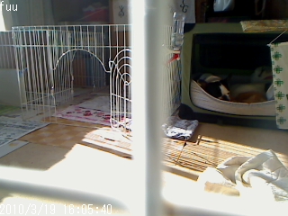 大左エ門のニューハウス 大左エ門のこと 2010年03月23日 comment(4) http://j24h.blog.shinobi.jp/Entry/527/大左エ門のニューハウス 先週の金曜日、うっかり大左エ門のサークルの扉を閉めて出るのを忘れてしまった。当然だが、自分のサークルの中で留守番するほど、賢くない大左エ門。すぐさま出てきて、我が物顔でふうたれのハウスを占拠した模様。一応、ふうたれもけん制してみるが、実は大左エ門のほうが図々しい性格をしているので、いっこうに譲らない大左エ門。こうなると、ふうたれは、自分も~とベッドに入ることはない。もっともクレートはないが、カメラに写らないところに、もうひとつベッドが置いてあるので、ふうたれは、そこで寝ていたらしい。午後になって、日向ぼっこの時間がくると、大左エ門も出てきた。 そして、その後、めずらしく2ブヒが、ふうたれのベッドで寝ていた。(でも決して寄り添っていない)よく見ると右奥にふうたれがいるのがわかる。つまり大左エ門が出てきたスキに、ふうたれがベッドに戻ったあとで、大左エ門が割り込んで入っていったのだ。ま~大左エ門も自分のバリケンより、ふうたれのクレートのほうが広々としてて寝心地もいいんだろうな。大左エ門のバリケン、ちと小さいもんなぁ。まぁるくなって寝るぶんには、支障はないけど、のびのびと寝れないし・・・。せっかくの湯たんぽも追い出されてたし。前々からそれは気になっていたのだが、なかなか大左エ門のサークルの中に入れて使える大きさのクレートがないんだよねぇ。あっても縦長。ベッドを入れようと思うと側面あきのクレートじゃないと都合が悪いし。でも金曜日のこの画像の様子を見ていて、やっぱりなんとかしちゃらなイケンと、おかやん、この連休にホームセンターで材料を買ってきた。安上がりな・・・。そして、完成品は、こちら。何しろネジ止めじゃなくて、全部木工用ボンドで仕上げたもんだから、ところどころしっかり止まってないが(汗)まぁ、動かさなかったら大丈夫やろ(汗)カバーをかけているので、わからないが、実は、このクレート、骨組みだけで、壁がほとんどない(爆)おとやんに貧粗なクレートだといわれたが、夏場は、風が通ってよろしい。冬場は、保温シートでも巻いてやればOKやろ。このあと、大左エ門は恒例のベッドでチッコタイムをした(涙)が、これで身体をのばして寝ることもできるようになったぞ!喜べ! PR 【ランキング参加中】お気に召したらバナーをクリックしてくださいね。