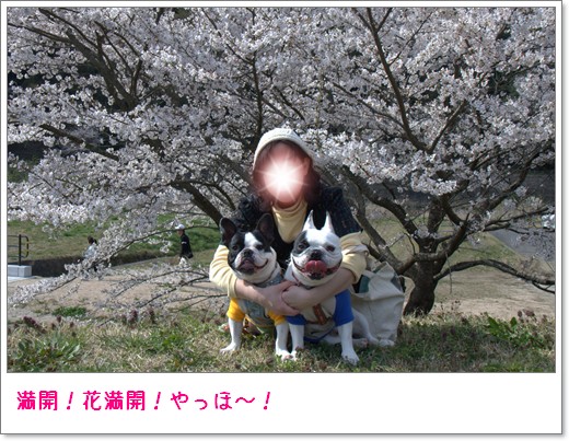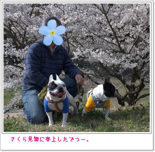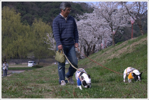 桜満開!春爛漫! おでかけ 2010年04月04日 comment(6) http://j24h.blog.shinobi.jp/Entry/530/桜満開!春爛漫! この土日、満開の桜を楽しんだ人も多かろ。我が家も何年ぶりに、木次~三刀屋方面に桜を満喫しに出かけた。デジイチを持って歩くと、当然にこのよーにアップップな写真も撮ってみる。ありふれた構図である。有名な木次土手は、大渋滞!人、人、人。もっとも人が集まるだけのゴージャスな桜並木である。ブヒ連れなので、そんな人ごみは避けて、三刀屋のほうへ廻る。こちらもソコソコ花見をするには十分な並木だが、そんなに混雑もしてないので、ゆっくりと散策することができた。 たまに、よそのワンコにも会うが、ふうたれがいつものごとくガウガウするので、小型犬を抱っこしたファミリーが、うちに近づこうとして、おののいてヤメて去っていった(苦笑)すんません。同じブヒの飼い主さんだったらそんなことヘーキな人も多いだろうが、ブヒを知らない飼い主さんは、「こいつにかかわったら大変だ」的オーラを発しながら去っていく。なので、他のワンコの写真は撮れずじまい。めずらしくシェパードを連れた人もいたのだが・・・。最近のシェパードのスタンダードは、後ろ足がX(エックス)型になっていることというのは、某テレビ番組で見たが、これには、獣医学的に反論する獣医もいた。もちろんケンネルクラブは、X型のほうが獣医学的にも正しいなどと言っていたが、どう見ても歩きにくそうだし、あれでは警察犬として動けんだろーと思うような格好になってしまっている。今日のニュースで、JKCが必要以上の小型犬の改良をしないよう、ショードッグの基準を変更したと言っていた。たとえば5kg以下のチワワは失格になるそうな。ブヒも最近、小型化傾向にあるが、ブヒらしさが消えないようにしてほしいもんだ。ただでさえ改良犬なんで、障害や病気も出やすいのだから。と、かなり桜の話から脱線してしまった。今日は、お天気もよかったので、しばらく歩くとゼーハーの2ブヒ。途中、コンビニがあったので、アイスクリームを調達して2人と2ブヒで食べていると、近くにいたファミリーのおかーさんが、子供に向かって「ほら~ワンちゃんが、ガリガリくん、食べてるよ~」と言っていた。確かにガリガリくんを食べていた。(舐めていたというほうが正しい)しかし、どうもソフトクリームのほうがよかったらしく、ブヒにはガリガリくんは不評であった。今日は、風もなく、穏やかで本当に花見日和。しっかり満喫したので、晩御飯のあとは、みんなすぐにバタンキューだ。私も先週は、体調が悪く、仕事から帰るとほとんど寝ていた。今日は、なぜか花見から帰ってきたら肩から腕にかけて筋肉痛になっているし、首筋がまたパンパンになってきたので、ボチボチ寝るとしよう。 PR 【ランキング参加中】お気に召したらバナーをクリックしてくださいね。