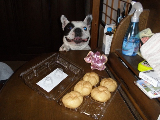 ふうたれとシュークリーム ふうのこと 2010年04月23日 comment(6) http://j24h.blog.shinobi.jp/Entry/535/ふうたれとシュークリーム それは、おかやんの鏡台の上にシュークリームの入ったパックを置いていたときのことだった。ここから一つだけ取って、おかやんが食べたのをちゃっかり見ていたふうたれ。 欲しくて、欲しくて、たまらないふうたれ。ジャンプをしてみたり、必死で短い手を伸ばしてみたりしてみるふうたれ。我を忘れ、努力してみたが、いっこうに思ひは届かず。大左エ門に八つ当たり。 PR 【ランキング参加中】お気に召したらバナーをクリックしてくださいね。
