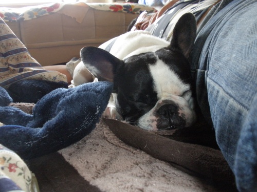 ふうと大左エ門の距離 日常のこと 2010年05月04日 comment(2) http://j24h.blog.shinobi.jp/Entry/538/ふうと大左エ門の距離 いきなり、ふうたれのボタモチのような顔アップで失礼しました。ちょっと目の脇が赤いのが気になります。しばらく前からずっとです。今日も暑い一日でした。昨日の疲れもなんのその、何故かしら今朝は6時前には、目がさめてしまいました。いやーこのパワー、きっと連休が終わるとともに消えてなくなるんだろうな。連休なんてあっというま。たった5日間なんて、どこがゴールデンよ?と思う私。ゴールデンって言うからには、せめて10日ぐらい休みたい。 しかし、5日間でも普段よりは、時間に余裕があることには、間違いない。今朝は、おとやんと近くのカフェ~にコーヒーを飲みに行くなどという余裕さえあった。土日にはナイ余裕である。それだけでもやっぱりゴールデンかもしれない。日々、時間に追われている感があるが、この連休は、気持ちゆったり感があるのが、ブヒたちにもわかるのではないだろうか?なにげに、ブヒたちが安心しているような気がする。(特にふうたれは)猫の手招きのようなかっこうで寝るふうたれ。肉球を触れるのがキライなので、よくこうやって肉球をかばうようにして寝ている。大左エ門は、おとやんの隣で・・・。何しろおかやんの隣では安心して寝れない大左エ門。すぐにふうたれがやってきて、「そこのけっ!」と割り込まれるか、もしくは、おけちゅ嗅ぎのあげく上に乗られるかするのである。昨日も車の中で、めずらしく大左エ門を抱っこして、ふうを足元に座らせていたら、途中で、すっごい剣幕でギャンギャン吠えて、食って掛かかり、危険な状態に・・・。大左エ門も2歳をすぎ、オカマちゃんだといえどもとりあえず成犬♂になったせいか、何かの拍子にガンつけあうと、どえらい剣幕のいがみ合いになることが目立ってきたこの頃。甘甘ちゃんのふうたれにしてみたら、大左エ門が自分より優遇されるのは絶対に許せないらしい。いやはや先が思いやられます。 PR 【ランキング参加中】お気に召したらバナーをクリックしてくださいね。