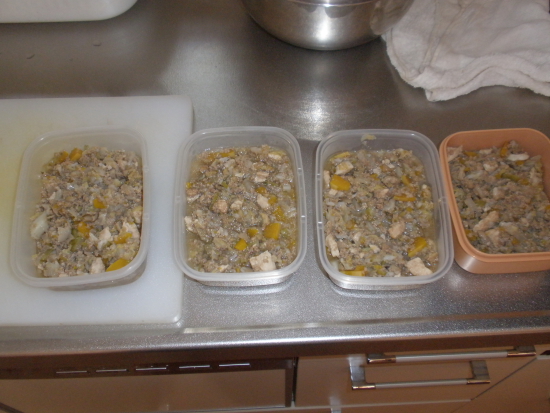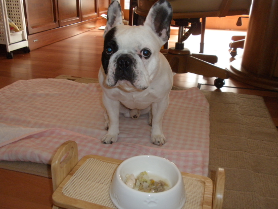 ふうたれ!試食会! ふうのこと 2010年05月23日 comment(2) http://j24h.blog.shinobi.jp/Entry/545/ふうたれ!試食会! 夜は、手作りもどきのブヒご飯。先日、にほい鑑定士、おやつ評論家、ごはん監査役とさまざまな顔を持つ「パンさま」のブログにて、ブヒ飯を紹介されておりました。それを見て、ワタクシも大なべでまとめて作ってみることにいたしました。にほい鑑定士、おやつ評論家、ごはん監査役なら、オラちゃんも負けんけん。 byふうふうの場合は、「犬用」と称されるドッグフードやおやつ類に特にこだわりがあるらしい。時に「人間用」であっても熟れてない果実や野菜だけという一見ヘルシーには見えるが、肉食の本能には訴えかけるもののない食物にも見向きしないほどのこだわりようである。 大なべ・・・平野レミさん監修のレミパン黄色バージョンである。この写真からは、まったくレミパンということがうかがえないが・・。まちがいなくレミパンです。パンママさんは、ちゃんと食材の写真から撮ってでおいでだが、そこらへんは、ワタクシ割愛して、だいたいパンママさんとこの食材と似たり寄ったりということで。キャベツ、しめじ、大根、カボチャ、牛・豚ミンチ、鶏胸肉、白ごはんといったところ。監査役でつから。チビシク監査しちょります。by ふうこういうときだけは、実に強固な忍耐をみせるふうたれである。パンさんのところは、10日分も作っておられたが、うちは2ブヒの夜ご飯4日分。食べるときには、これに更に、以下を加える。【 わずか2分の簡単手作りごはん 】健康一番 570gお待たせ!ほんじゃ、試食してみる?万全の体勢で、まっちょーます。 byふう試食なので、ほんの一口。器の外側もキレイになめて、満足の出来栄えだったらしい。鑑定士の合格がもらえたところで試食会は終了した。 PR 【ランキング参加中】お気に召したらバナーをクリックしてくださいね。