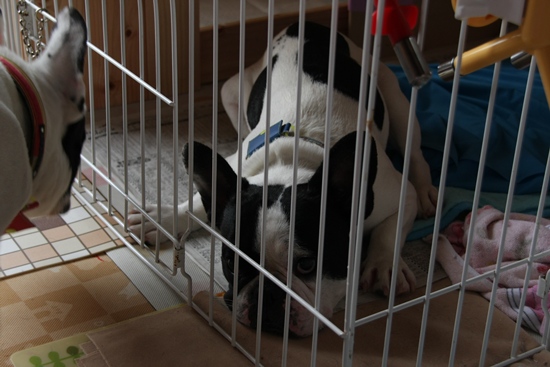 無駄なエネルギーを消費する 日常のこと 2010年06月20日 comment(4) http://j24h.blog.shinobi.jp/Entry/557/無駄なエネルギーを消費する もわっとしたお天気の日曜日。エアコンは、かけているが、窓も開けている(笑)そして扇風機が2台まわっている。世の中は@エコ@を目指しているというのに、真逆な生活を堪能する反国家戦略で挑む我が家。そして、この方もムダにエネルギーを消費する1ブヒである。 ただでさえ暑いのにただでさえ呼吸が苦しいほうなのに無駄に大左エ門を追いかけ、しかもシツコく、落ち着かずガーガーハーハー言い続けている。大左エ門をサークルに入れると、追いかける標的がいなくなるので、クールマットの上で身体を休める。しかし、大左エ門をサークルから出すと、再び無駄に大左エ門のおけちゅに鼻をくっつけて歩く。どうして、自分が苦しい思いをするのに、こう無駄にエネルギーを使うのだろうか?サークルの中の大左エ門は、クールマットの上に乗っているようで、乗っていない。かろうじて、おけちゅだけ乗っているのか。本格的なクールダウンタイムそれにしてもクールマットを色々買ってみたが、ジェルタイプのは、イマイチなんよねぇ~。ブヒバトルで、ジェルが偏るわ、人間が踏むとズルっと危ないわでねぇ。 PR 【ランキング参加中】お気に召したらバナーをクリックしてくださいね。