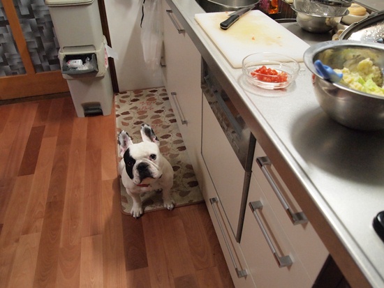 唯一の楽しみ ふうのこと 2010年07月20日 comment(0) http://j24h.blog.shinobi.jp/Entry/564/唯一の楽しみ この暑さでお休みも部屋の中でグータラ過ごすことしかできないブヒたちの唯一の楽しみは食事。キッチンマットが敷いてあるので、そこが座る場所と思っているのかどうかわからないが、最近ふうたれは、よくここで座って待つ。しかもマットの端っこギリギリのわけは、そこが一番、おいしいものに近い場所だから。狙っているのは、右上のほうに見えているボールの中身、ポテトサラダ。ポテトサラダの真下で待ってないのは、たぶん、マットが敷いてないから。この微妙な賢さがなんともいえない。ただ正直言って、そこは邪魔なんですけどー。 おかやん、くれんの?写真もやめてくんない?この訴えかける目。しかし、おかやんの手がポテサラに伸びると、ふうたれの視線はキラリ!期待に満ちた瞳が光っている。でもねーこれは、あげられません。もうマヨネーズ混ぜちゃったからねぇ。そのかわり、ほら、かつおのたたきがオマケで入ったごはんあげるから楽しみにまっとき~。しばらく、ブヒたちの晩御飯にはかつおのたたきが投入される予定である。 PR 【ランキング参加中】お気に召したらバナーをクリックしてくださいね。