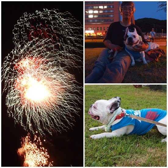 初めての花火大会 おでかけ 2010年07月31日 comment(0) http://j24h.blog.shinobi.jp/Entry/569/初めての花火大会 本日、松江の水郷際。今日、土曜日は3000発の花火。明日、日曜日は6000発の花火と二日間続けて花火大会が宍道湖である。毎年、メインの6000発を見に行くのだけど、昨年は天気が悪くてヤメ。今年は、日曜は、おとやんが自治会の会合があるため、本日30分間の3000発を見に行くことに・・・。もちのろんろん、ワタクスも連れてってもらえるんでせうね?メイン花火を見に行くときは、いつも留守番させていたが、30分ほどなんで今年は、つれってってあげるよ。 早く行くでつよー!というわけで、梅おにぎりとから揚げを持って、ブヒたちのご飯用にささみも持って遠足御一行様は、車に乗り込み一路、宍道湖へ。今日は、もわっとした暑さはあるものの風がしっかりあるのでありがたい。駐車場を降りて宍道湖まで少々、歩き。ふうたれちゃん、ガーガー言い始めた。洋服をぬらして、首にはひんやりタオル。あちこち人の様子をうかがい、うろうろするブヒたち。浴衣を着たおにーさん、おねーさんたちが、ブヒたちを見つけて「めっちゃかわいー、触ってもいいですか?」とやってきたので、しばしオニーさん、オネーさんたちにナデナデしてもらって、ご満悦の2ブヒ。ふうたれは、おにーさんに「笑ってる~笑ってる~」と、とっても気に入られてました。まー笑ってるんじゃなくて、ハァハァしてるんですけどねぇ。しばらくすると落ち着いてきたふうたれ。おとやんとおかやんの間に座って、時間が過ぎるのを待つ。大左エ門は、うろうろうろうろし続けていたので、最後には強制的におかやんの隣に座らせられていた。やがて日が暮れて、花火開始の時間に・・・。初めての花火。2ブヒの反応は、どうだろうか?と少し心配していたが、まったく平気だった。まぁ雷も平気だからなー。大左エ門は、ワンワン吠えて反応するかと思ったが、そんなこともなくおかやんにだっこされていた。30分で、ちょうど良かったかもね~。ブヒ連れだったから。帰り道は、駐車場まで、ブヒたちを抱っこして歩いたので、疲れた疲れた。重たーーーーーーーーーーーーい。というわけで、もうねむたーーーーーーーーーーーい。睡魔に負けそうになってきたので、これにて。おやすみ。 PR 【ランキング参加中】お気に召したらバナーをクリックしてくださいね。