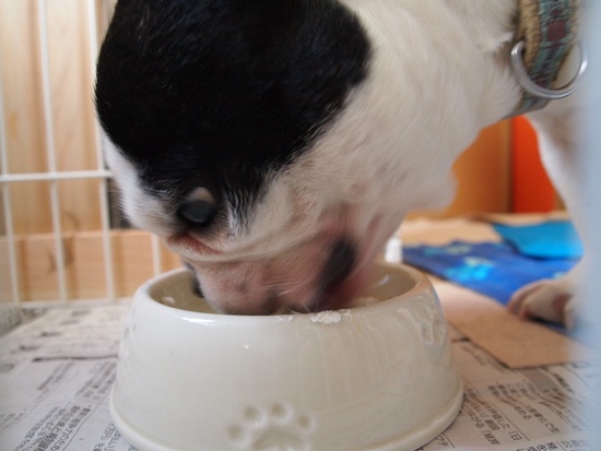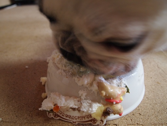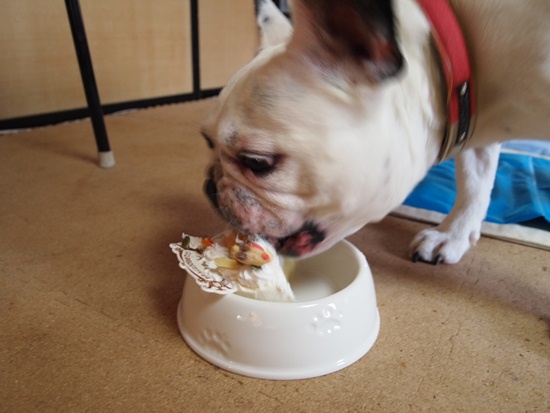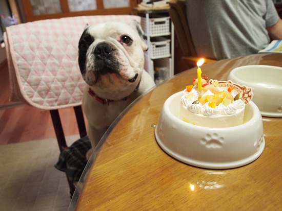 まだまだ4歳!元気でいこー! ふうのこと 2010年08月01日 comment(14) http://j24h.blog.shinobi.jp/Entry/570/まだまだ4歳!元気でいこー! happy birthday じぇんこくブヒファンのみなしゅあん。オラちゃん、本日4歳になったでつよぉ~。このクソ暑い中、どこにも行けまつぇんが、オラちゃんにもケーキの日がやってきたんでつー!ホーラおいしそうでつよ。ただローソクが1本って、どーゆうことぉ?オラちゃん、間違いなく4ちゃいでつけどぉ。 でもローソクは、どうせ食べられないんだから、興味ないでしょ?ふうたれくん。まぁーそうなんでつけどね。このローソク、ケーキに最初から1本だけついてたんだよねぇ。本当は4のローソク買いに行きたかったんだけど、おかやんこの土日は、家の窓ふきとかあって忙しかったんよぉ。ごめんね。それより早く食べたいでしょぉ~。というわけで、食べ始めましたが・・・。食べ方が、きちゃない「おたんじょうびおめでとう」のボードも床に墜落。わんこ型クッキーも器の外側を滑り落ちていく。まぁー、でもそのがっつく食欲が元気な証拠。何より、なにより!まだまだ元気でいてよぉ~、ふうたれくん!チミの犬生が末永いことを祈ってるよぉ。おまけのご相伴オトコうまい。うますぎる。顔が小さいぶん、器に口がうまく入るのと、大左エ門は舌が長いので、キレイに食べられる。お得な顔立ちである。でも大左エ門、目が真剣すぎてカラスみたいで怖い。 PR 【ランキング参加中】お気に召したらバナーをクリックしてくださいね。