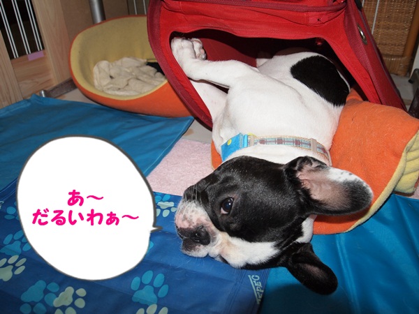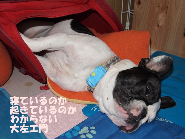 オチッコ失敗!トイレに避難 大左エ門のこと 2010年08月14日 comment(2) http://j24h.blog.shinobi.jp/Entry/577/オチッコ失敗!トイレに避難 今年のお盆は、普通に土日にひっかかり、おかやんの仕事も暦通りのため、普通に疲れるだけのお盆となっております。朝、6時。クレートの中で、硬直状態で寝る大左エ門。カメラを向けてもまったく動かず。金縛りにでもあっているかのごとく。早くから起きているふうたれだが、ふうたれもなかなかこの位置から動かず。だるそう。 硬直状態のままアクビ。ようやく起きて毛づくろいを始める大左エ門。ふうたれくん、おかやんがカメラを構える隣で、大左エ門のサークルの中を見学中。まるで動物園やな。やっと起きる気になったか?しかし、今日からお盆なので、おかやんたちは、朝から忙しい。(つーか8時半にお客さん来たしっ!)なので、このまましばらく放置。朝ごはんも今日は、サークルで。と思って、ごはんを持って2階へ上がったら大左エ門くんは、今、こうやって寝ている場所に大量のオチッコをもらして、本犬はトイレシーツの上に避難しておりました。何かがちがうぞ。 PR 【ランキング参加中】お気に召したらバナーをクリックしてくださいね。