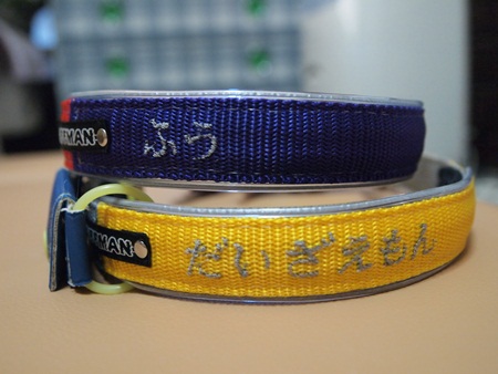 おNewな気管支を守る首輪 日常のこと 2010年08月26日 comment(5) http://j24h.blog.shinobi.jp/Entry/585/おNewな気管支を守る首輪 ふうの首輪がくたびれてきたので、新しいのを買いたいとしばらく前から思っていたが、ようやくお財布のヒモをあけた我が家。2ブヒ分の出費は、なかなか痛いが、やっぱりパワフルブヒには、首輪堂ハフマンさんのしっかりした作りの首輪が安心!というわけで、諭吉さんにサヨナラしました。ふうは、今までもハフマンさんの首輪で赤色の首輪でしたが、今回は紫にしました。大左エ門は黄色。詳しくは、ホームページで紹介していますので、ハフマンさんの首輪に興味のある方は、コチラをみてくださいね。>>気管支を守る首輪 そして、お初の多頭用リードも購入してみたので、さっそく今日の夕方は、これでお散歩に行きました。ハフマンさんの多頭用リードは、よくできていて、ブヒたちが入れ替わって歩いても絡みません。リードの長さは、違う長さを2本つけています。首輪の部分と持ち手の部分には、ショックレスパッドがつけてあるので、引っ張られても痛くないんですよぉ。ブヒの気管支と人間の手にも優しい首輪です。 PR 【ランキング参加中】お気に召したらバナーをクリックしてくださいね。