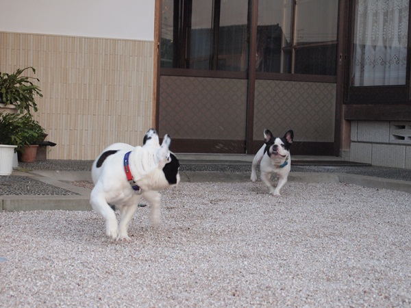朝食前 日常のこと 2010年09月04日 comment(5) http://j24h.blog.shinobi.jp/Entry/593/朝食前 朝ごはんの前に庭遊び・・・。かろうじて朝だけは、少し暑さもひいているので、この時間を逃すと外では遊べないからねぇ~。いくよぉ~~~~~っ!と、とりあえずは勢いよく外に出た。しかし、あまり乗り気ではなさそうな顔。 大左エ門もイマイチ乗り気でないみたい。というか・・・・2ブヒとも帰ろうとしてるし・・・・。おかや~ん!メシぃーーーーーーーーーーーーーーっ! PR 【ランキング参加中】お気に召したらバナーをクリックしてくださいね。