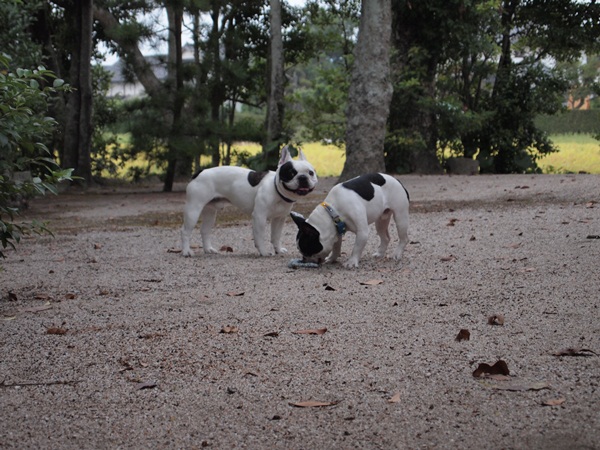 ちょんぼし庭あそび 日常のこと 2010年09月06日 comment(8) http://j24h.blog.shinobi.jp/Entry/595/ちょんぼし庭あそび まだ暑いけど、ちょんぼし庭でストレス発散タイム。ロープボールのおもちゃで遊ぶ大左エ門を何気に狙うふうの図。大左エ門は、おもちゃを投げると喜んで追いかけますが、ポンタレのためモッテコイはできません(汗)モッテコイというと、せっかくくわえていたオモチャをわざわざ落として、駆け寄ってきます。そーぢゃないだろーっ!ふうたれは、別におもちゃを狙っているわけではありません。 シレ~っとした顔をしているふうたれですが・・・・最終的には、コレです。↓パワーマンふうの筋肉がすごいです。はんにゃ顔の大左エ門、笑えます。 PR 【ランキング参加中】お気に召したらバナーをクリックしてくださいね。