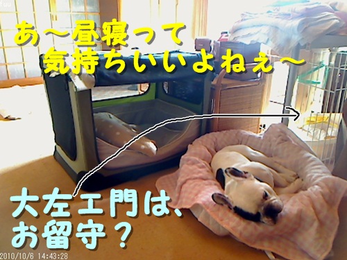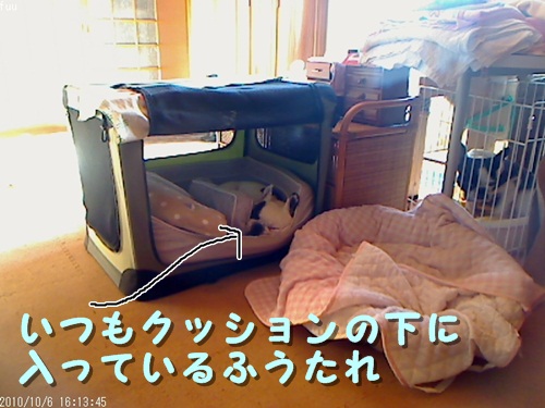 おるちゅばんWEBカメラ 日常のこと 2010年10月06日 comment(6) http://j24h.blog.shinobi.jp/Entry/616/おるちゅばんWEBカメラ まいど~ネタのないときの恒例WEBカメラ画像。本日の昼下がり。ふうたれくんは、いい感じでお昼寝をしていました。大左エ門は、寝床にいないところをみると、日当たりのいい場所で、大好きな日向ぼっこをしていたと思われます。あっちなみにですね。大左エ門は、1290円のオトコから2980円のオトコに昇格しました(笑)ふうたれに買ったファンタジスタのベッドは、大左エ門に譲りました。1290円のケースは、本来の収納ケースとしてブヒたちの洋服入れになりました。上の写真でふうたれが寝ているベッドは、ホームセンターで買った1680円のベッドです。ちょっと安めのオトコに格下げ?(笑)だけど、このドーナツ型の大きさが、なんだかよさそうだったので一度、買ってみたいタイプだった。結果、かなりいい感じで、満足です。さて、夕方になると・・・。大左エ門も日向ぼっこから戻ってきたようだ。そして、ふうたれは、クレートの中でボロボロのベッドに横たわっていた。このベッドに寝るときは、だいたいクッションをはがして、その下に潜り込んでいる。このベッドは、ちょっと大きかったんで、こうして、クッションの下に潜り込むほうが落ち着くらしい。こうして12時間のお留守番タイムを今日も過ごしたブヒたちだった。 PR 【ランキング参加中】お気に召したらバナーをクリックしてくださいね。