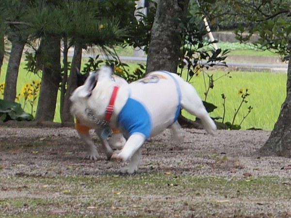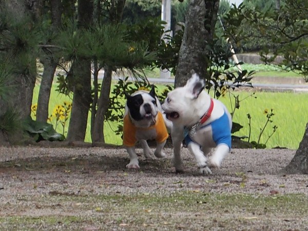 第3R 走って走って 日常のこと 2010年11月02日 comment(2) http://j24h.blog.shinobi.jp/Entry/636/第3R 走って走って 柵はないので、いつもドキドキするが、まぁちょっとしたドッグランの代わりにはなっている。走り出すと庭の端から端まで、思いっきり追いかけっこする2ブヒ。写真がボケボケなのは許してちょんハゲ(?)こういう写真がばっちり撮れるようになると、素晴らしいのだが、いっこうに写真撮影の腕前は上がらないおかやんであ~る。時々、大左エ門がふうたれにつかまって、羽交い絞めにされたり、大左エ門の反撃でふうたれが噛みつかれたりしているが、まさにトムとジェリーのブヒ版である。ちなみにこの写真で着ているお洋服は、ブルピットさんで購入しました。只今、フリースのお洋服も注文中です。価格も購入しやすい価格のお洋服なので、冬物をさがしている飼い主さんは、サイドバーにブルピットさんのリンクを貼っているので、覗いてみてくださいね~。冬物がいろいろ出てますよ! PR 【ランキング参加中】お気に召したらバナーをクリックしてくださいね。