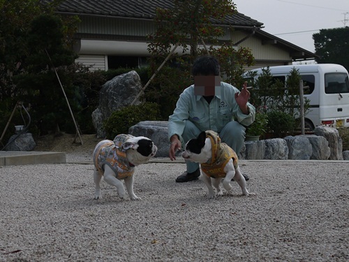 おNEWな服 日常のこと 2010年11月13日 comment(4) http://j24h.blog.shinobi.jp/Entry/648/おNEWな服 しばらく前、おとやんがぶっひ~ずに洋服を買ってやると、お金をくれた。まーなんだな、その未確認飛行物体さまのおかげといか、水戸の黄門さまのおかげというか・・・。(なんのことやら?)ひらたく言えば(?)、黄門さまがおとやんにおこづかいをくれた。そう・・・・パチンコの黄門さまが・・・・。ブルピットさんで購入しました~! 今回は、フリースパーカーです。袖なしですが、軽くてあったかいので、お散歩なんかも動きやすくていいですよ。ちょうど庭に出たらおっちゃんが来ました。(おとやんの弟)いつも遊んでくれるので、大好きなおっちゃんです^^ふうたれ、なかなか似合ってるじゃん!大左エ門は、特に寒がりだからコレでぬくぬくでお散歩行けるねぇ。ちょっと写真がボケボケだけど、さっそく庭でダッシュする出雲ぶっひ~ず。今日のふうたれは、あまり大左エ門に絡まないので、大左エ門のほうから絡もうとしていた。いつもふう兄に、絡まれると怒るくせに、絡んでもらえないと、自分から絡みに行く、まったく都合のいいやつです。昨日からちょっと風邪っぽいふうたれは、鼻水でてま~す!でも元気ですけどね^^次回、お散歩編です。 PR 【ランキング参加中】お気に召したらバナーをクリックしてくださいね。