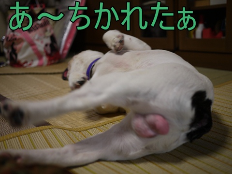 体操? ふうのこと 2011年01月15日 comment(0) http://j24h.blog.shinobi.jp/Entry/690/体操? 年末からほとんど散歩に行けておりません。こうなるとウンチのサイクルも狂ってくるわけですが身体もなまってきます。なまった身体を少しでもほぐすためふうさんなりに体操(?)をしています。時々、出現するふうたれさんの軍事訓練(?)まるでヘビのように進んでいきます。たまに夜中にニョロニョロとやっていることがあり、夜の無気味度をUPさせています。相当、身体がなまってますねぇ~。ということで、昨日の夕方、久しぶりに散歩に行きました!そして、今日も昼に、風ビュービュー、雪チラチラの中を散歩に行きました。飼い主は、帽子を深く耳が隠れるようにかぶり、ネックウォーマーで鼻まで隠しほとんど目だけを出した不審者状態で歩きました。早くあたたかくなってくれ~。 PR 【ランキング参加中】お気に召したらバナーをクリックしてくださいね。