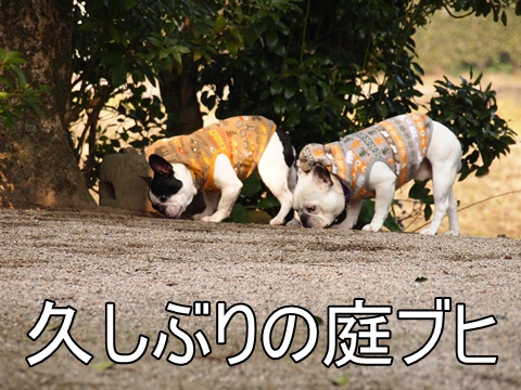 久しぶりの庭ブヒ 日常のこと 2011年02月05日 comment(0) http://j24h.blog.shinobi.jp/Entry/700/久しぶりの庭ブヒ なーんか春めいた陽気の本日、こりゃ~トーゼン庭ブヒでしょ~!この日が来るのを待ってました!とばかりに庭に飛びだした2ブヒ。匂いチェックに忙しいブヒ。ヨダレが流れ落ちるほど、匂い嗅ぎに専念するふうたれ。「ふう兄ちゃん、なんか・・・落ちてる・・・これ食べれる? By 大左エ門」大左エ門、ふうのヨダレは食べられませんっ!「ほいじゃ、これは?」常に食べられるかどうかを考える大左エ門。ひととおり匂いチェックが終わったふうたれの行動が怪しくなってきた。やっぱり、始まるのね・・・・。本日、完全な抑え込みで、ふうたれの圧勝!いや別に、ふうたれって物好きだねぇ~なんて思ってないヨ(思ってるケド)まだ寒さが逆戻りするんだろうけど、春は確実にやってきているのよね! PR 【ランキング参加中】お気に召したらバナーをクリックしてくださいね。